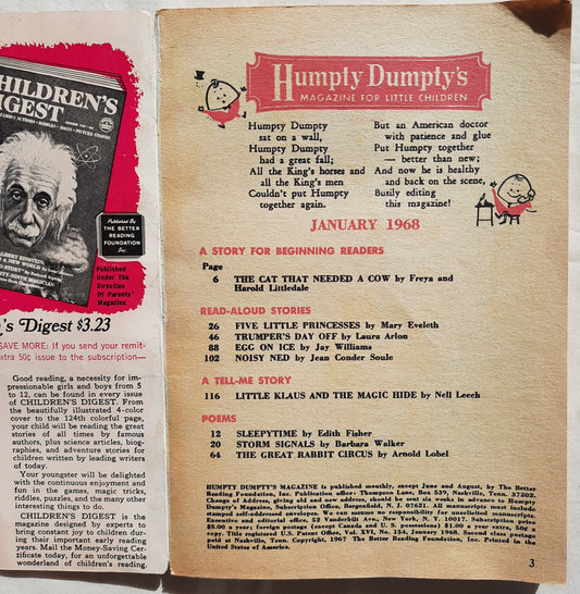 Humpty Dumpty Magazine for Little Children: Egg on Ice (Good, January 1968, PBk, 122 pages, The Better Reading Foundation)