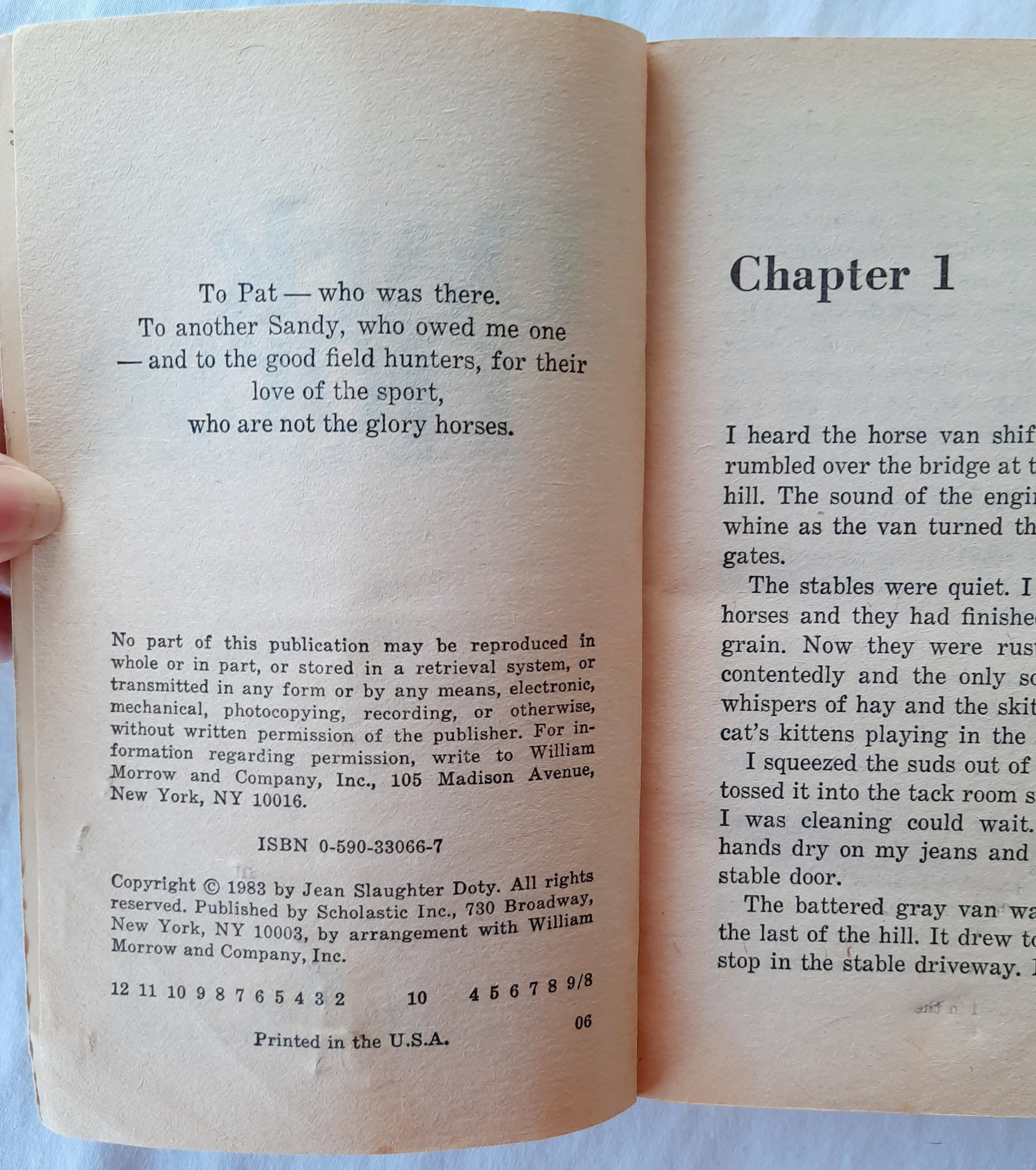 Abby has always loved horses and hung out doing odd jobs at any barn near the various homes her family has moved to, but now she's working at High Hickory Farms, an elite hunter/jumper barn whose married owners met on the Florida show circuit. To this farm comes, one fine summer day, a neglected brown horse they name Sandpiper.