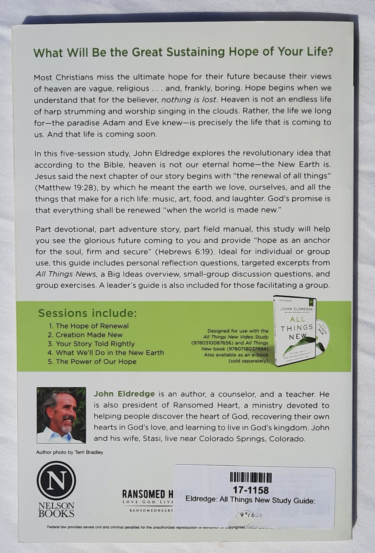 All Things New Study Guide: Heaven, Earth, and the Restoration of Everything you Love by John Eldredge (New, 2017, Pbk, 128 pages, Nelson Books)