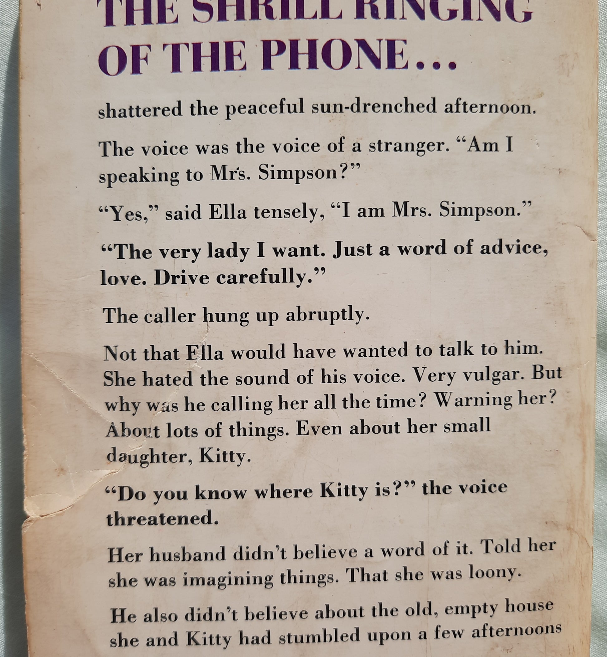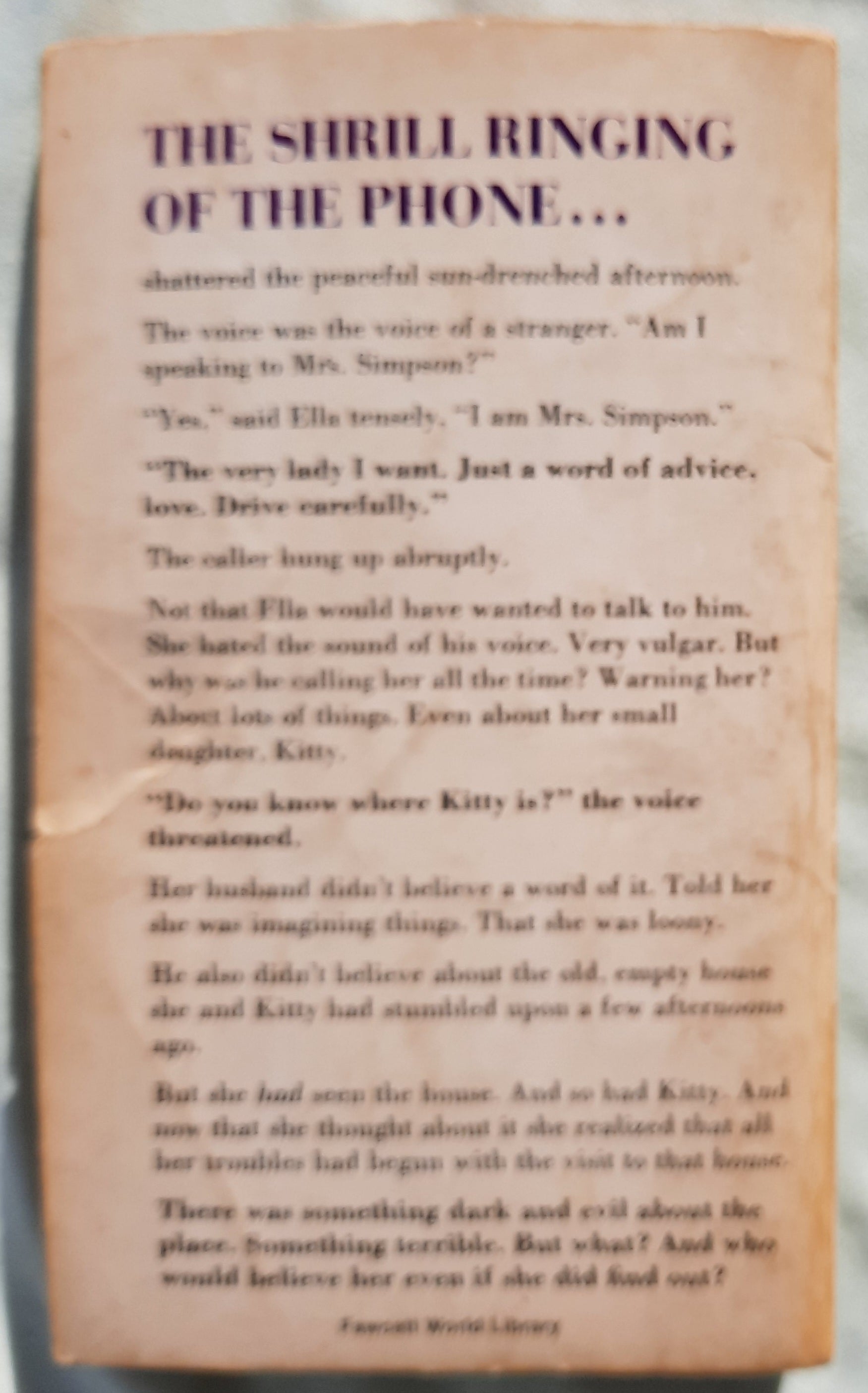 On a warm, dreamlike mid-July day, Ella Simpson and her six-year-old daughter, Kitty, come upon an abandoned house. They hear a terrified scream from inside . . . and an owl flies out. That night, Ella can’t sleep. Has her mind been playing tricks on her ever since her miscarriage, as her husband, Max, insists? Or is there another explanation?