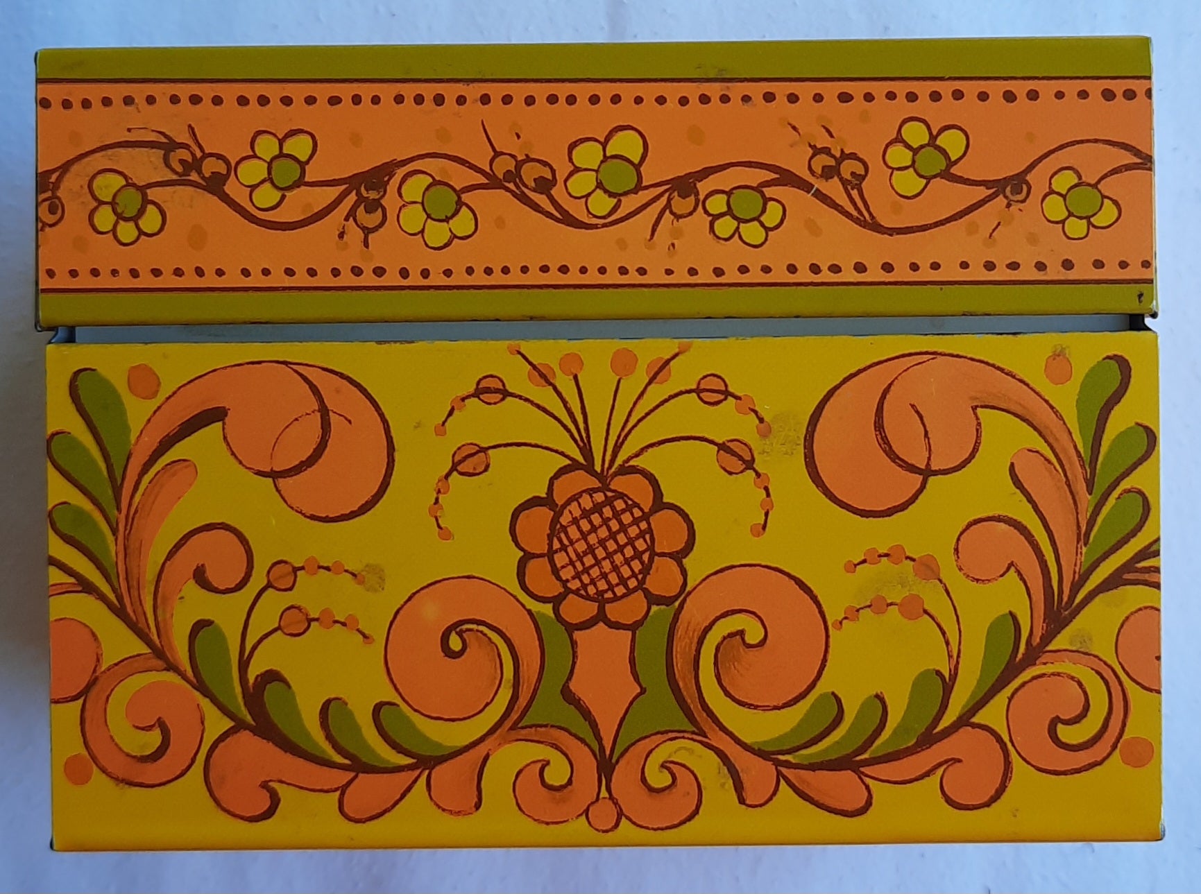 The box is a great addition to any collection of vintage items or for those interested in cooking with wild game. It is in good condition and was produced in the United States. The topic of the box is specifically centered around hunting and fishing, and the subject is recipes for cooking wild game.Tin box has some scuffs and scrapes; one corner is dented but the box still opens and closes. Some recipe cards have staining as they were used.