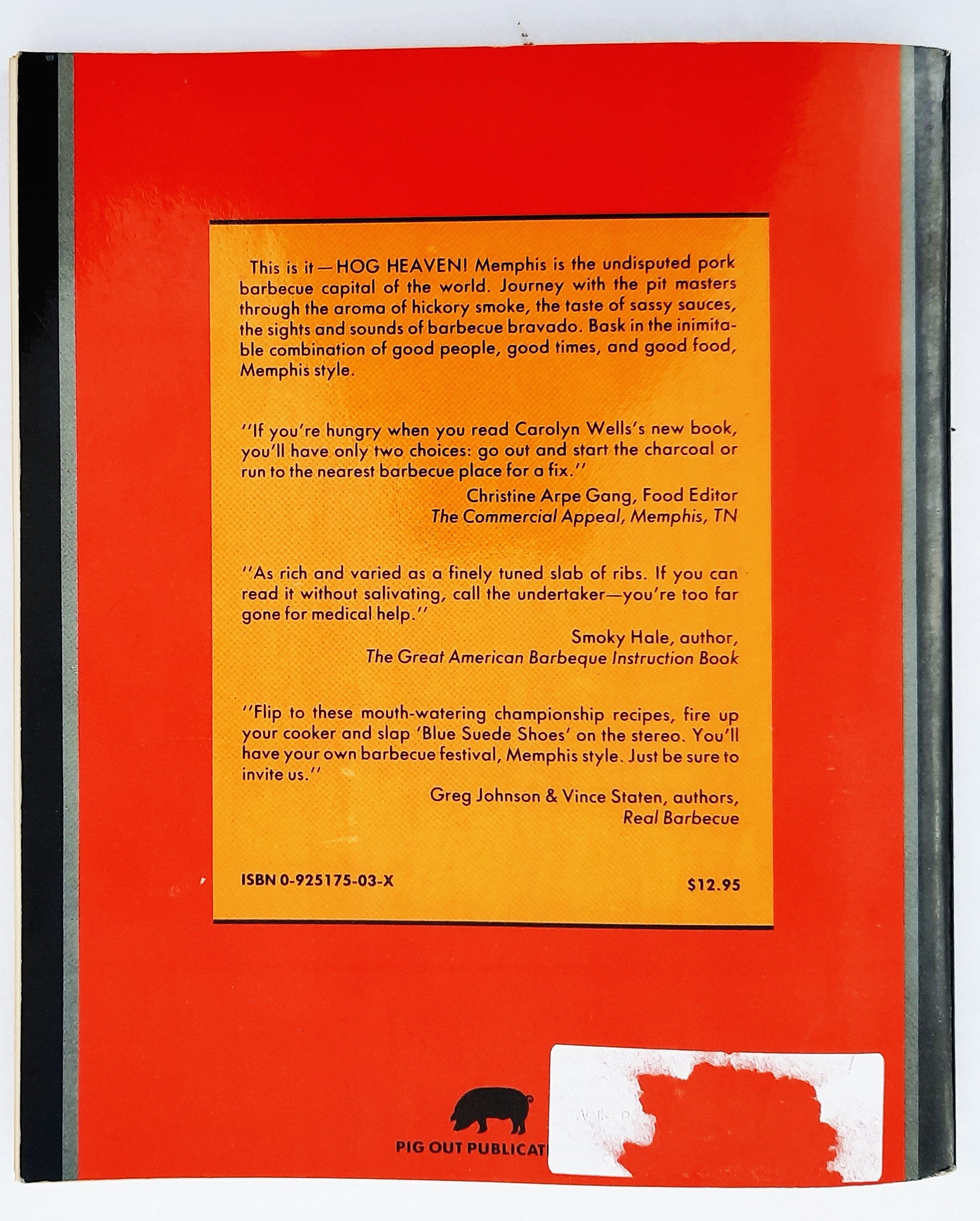 Barbecue Greats Memphis Style by Carolyn Wells (Acceptable, 1989, PBK, 127 pages, Pig Out Publications)