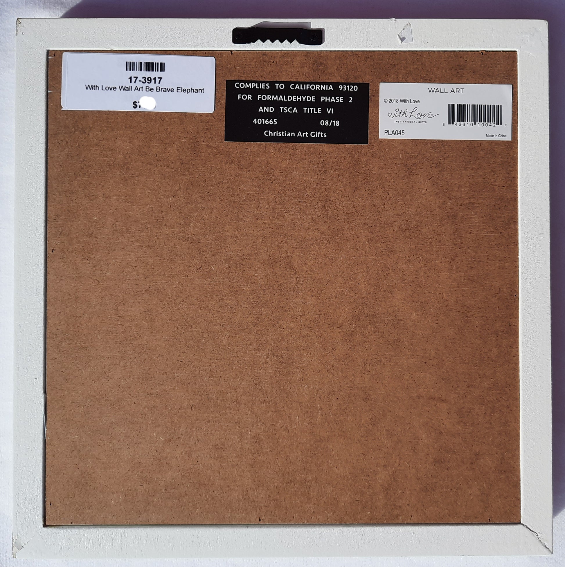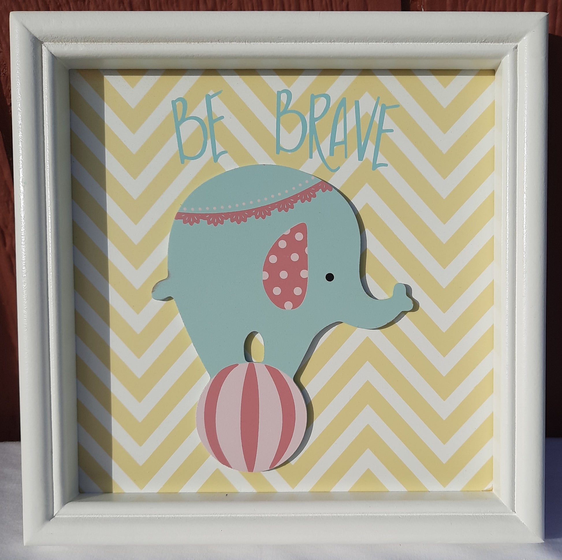Be Brave, Elephant with Ball White Framed Art 9.5" Square (New, 2018, Christian Art Gifts)