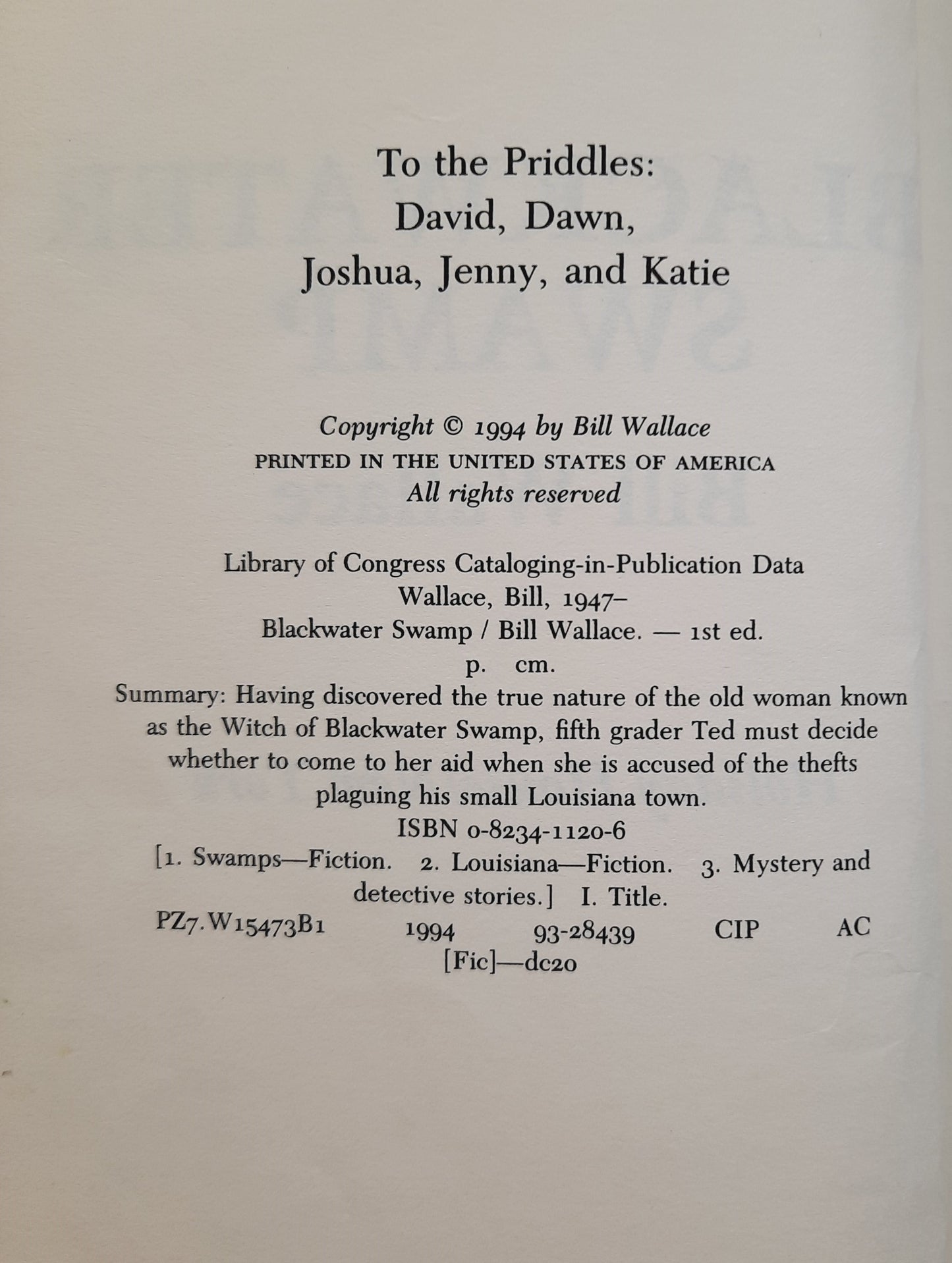 Blackwater Swamp by Bill Wallace (Good, 1994, HC, 185 pages, Holiday House)