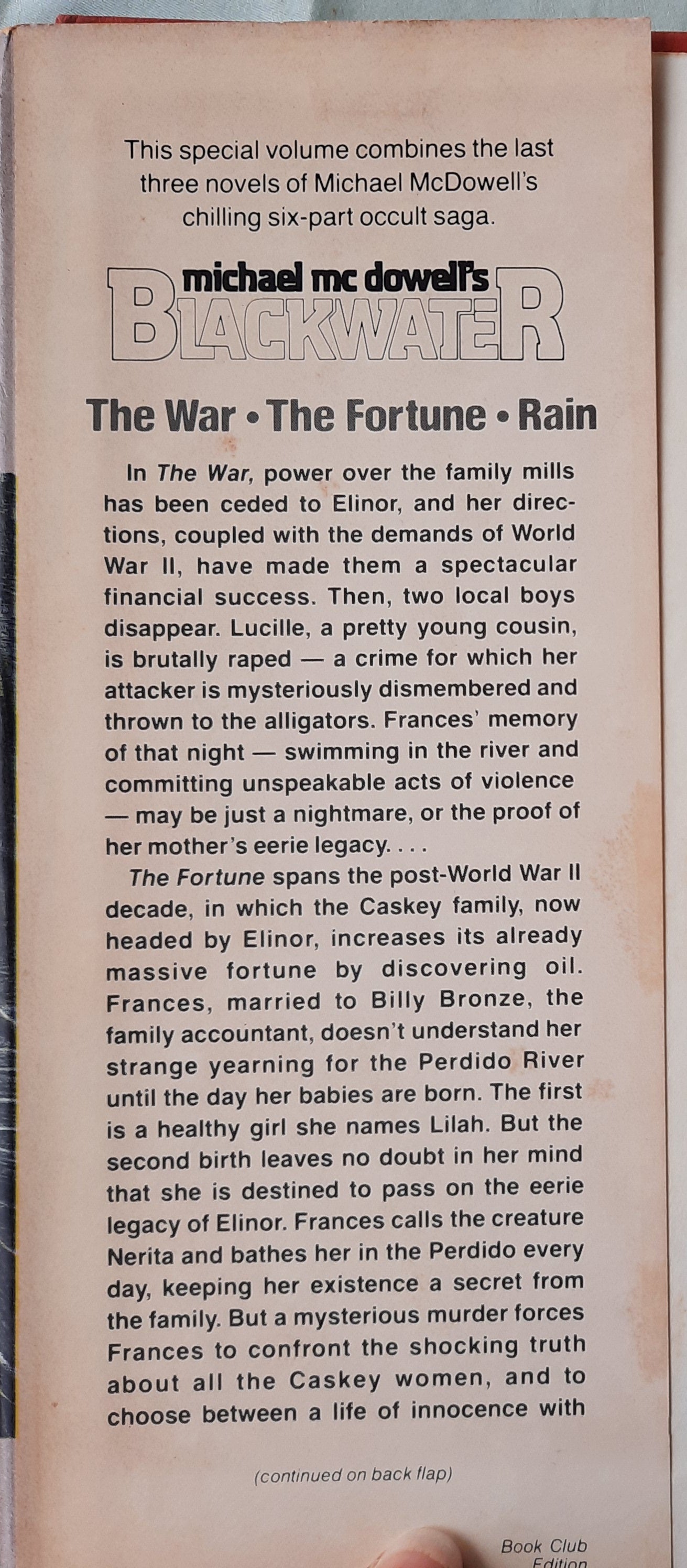 Blackwater Volume II by Michael McDowell (The War/The Fortune/Rain, Good, 1983, HC, 402 pages, Avon)