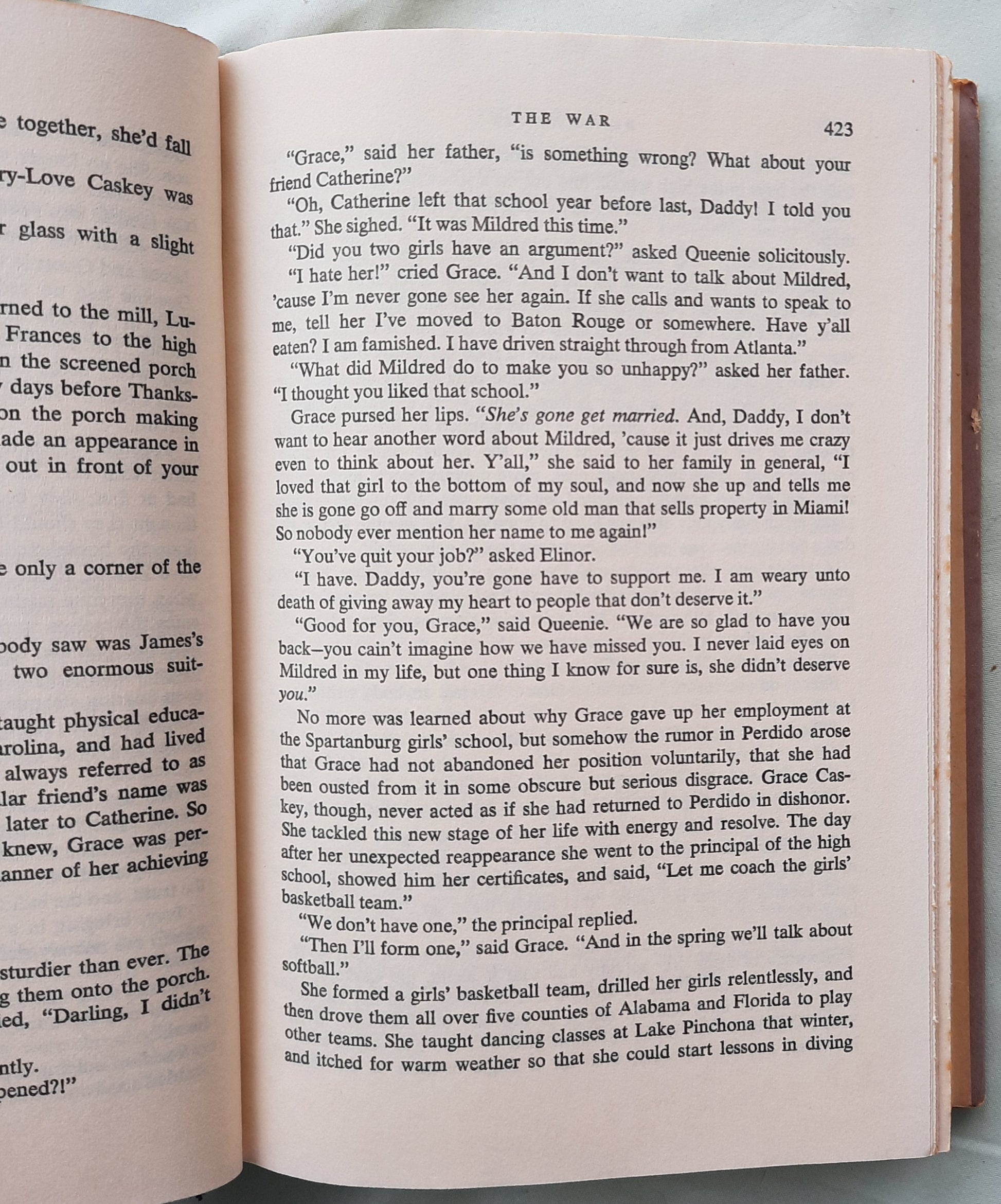 The War: Wartime in Perdido jolted the sleepy little Alabama town as new people entered the community. Outsiders would invade the comfort of the wealthy Caskeys and take their daughters. This, though, was part of the master plan of Elinor Caskey, who would see the family flourish amidst the destruction and death she administered in a fashion more awesome than the war itself.