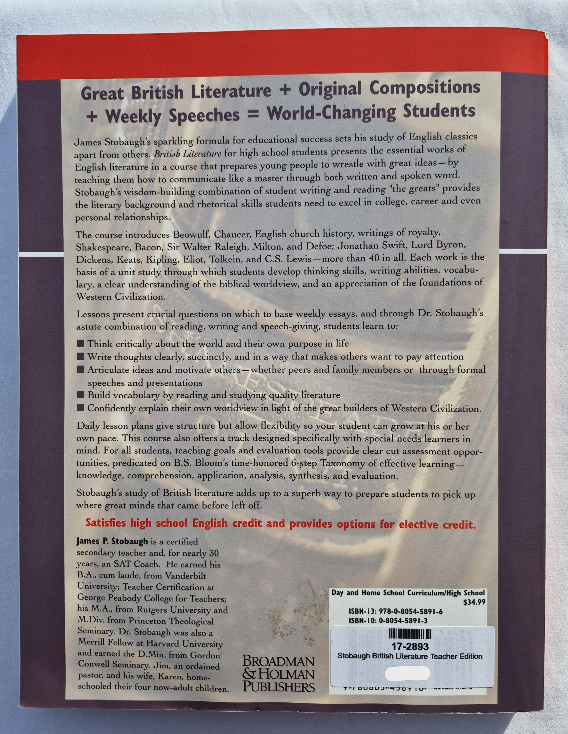 British Literature Teacher Edition with DVD by James Stobaugh (High School, NEW, 2005, Pbk, 360 pages, Broadman & Holman)