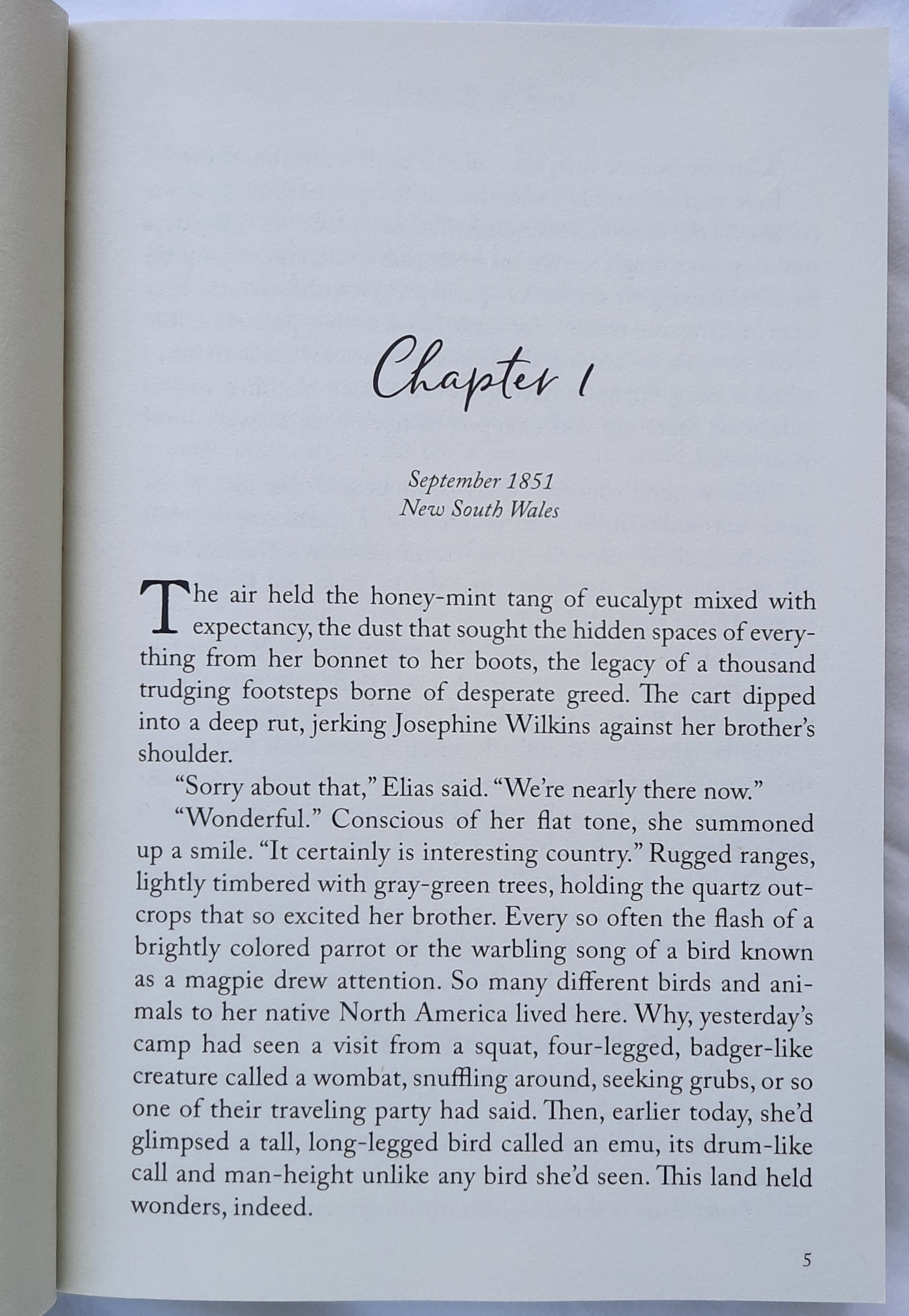 Josephine Wilkins is headstrong and heartbroken—why else would she have left all she knew to follow her brother’s dreams of finding gold across the seas? Daniel Jardine is simply seeking adventure, in a land far away from family responsibilities and duty, two burdens he’s happy to disregard in his quest to be known for himself. When these two finally meet sparks are set to fly, as they discover that digging deeper than first impressions reveals the true value of one’s character, and real love and faith is worth far more than gold.