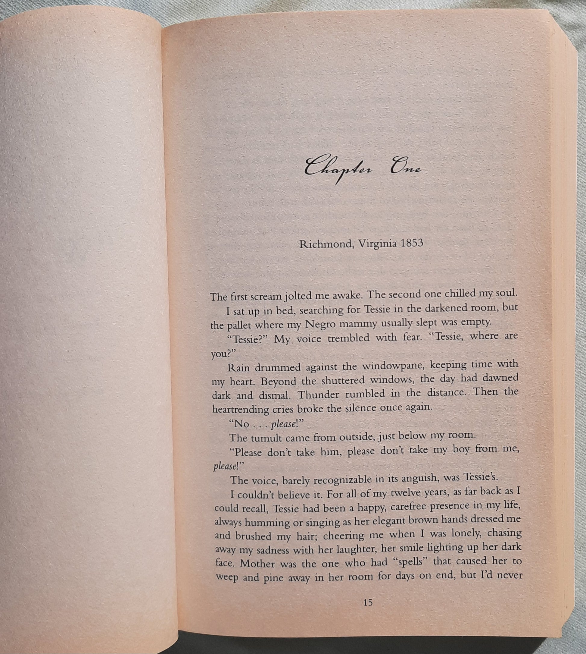 The daughter of a wealthy slave-holding family from Richmond, Virginia, Caroline Fletcher is raised to believe slavery is God-ordained and acceptable. But on awakening to its cruelty and injustice, her eyes are opened to the men and women who have cared tirelessly for her. At the same time, her father and her fiance, Charles St. John, are fighting for the Confederacy and their beloved way of life and traditions.