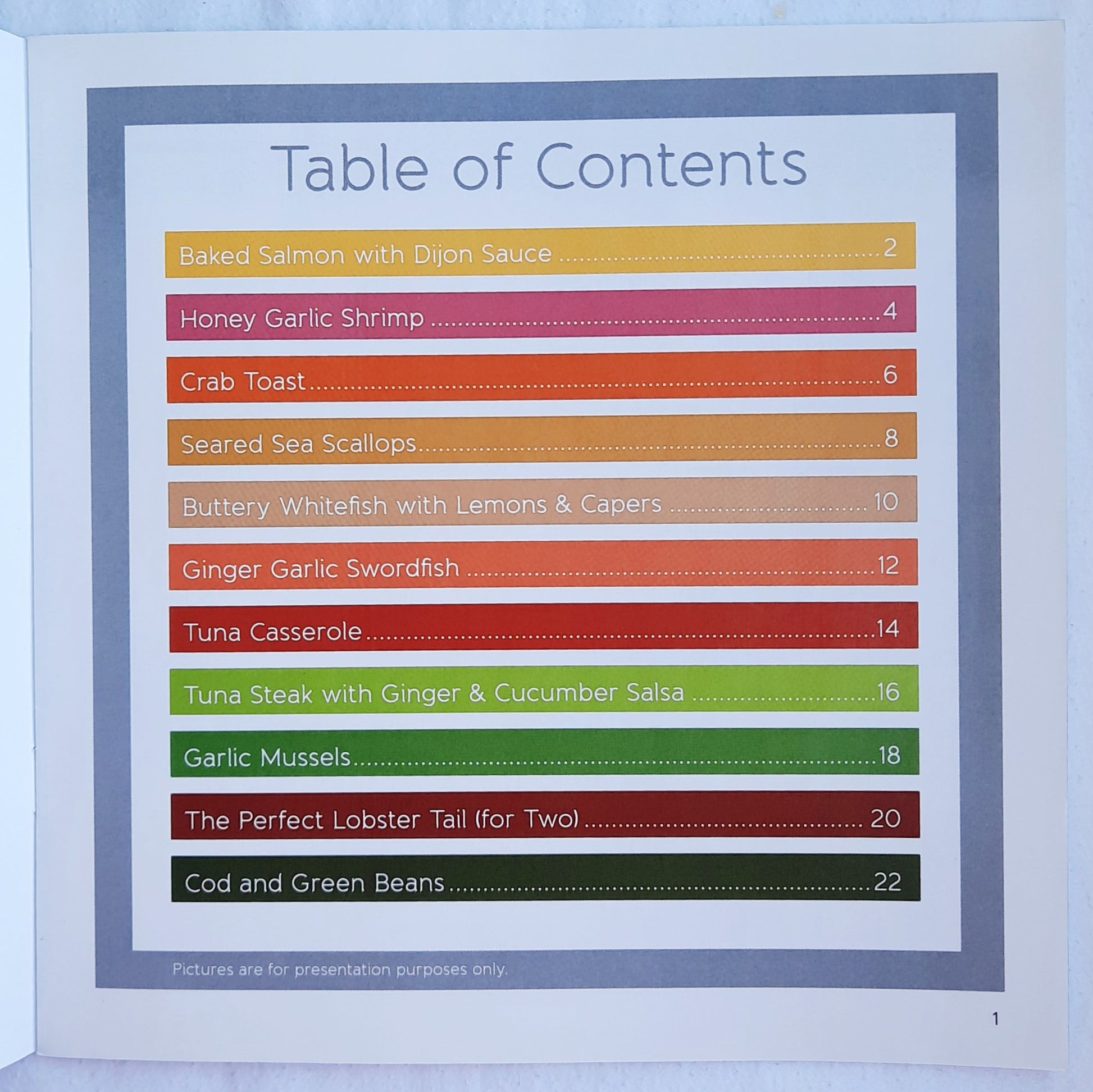 Includes 11 recipes for seafood and fish.