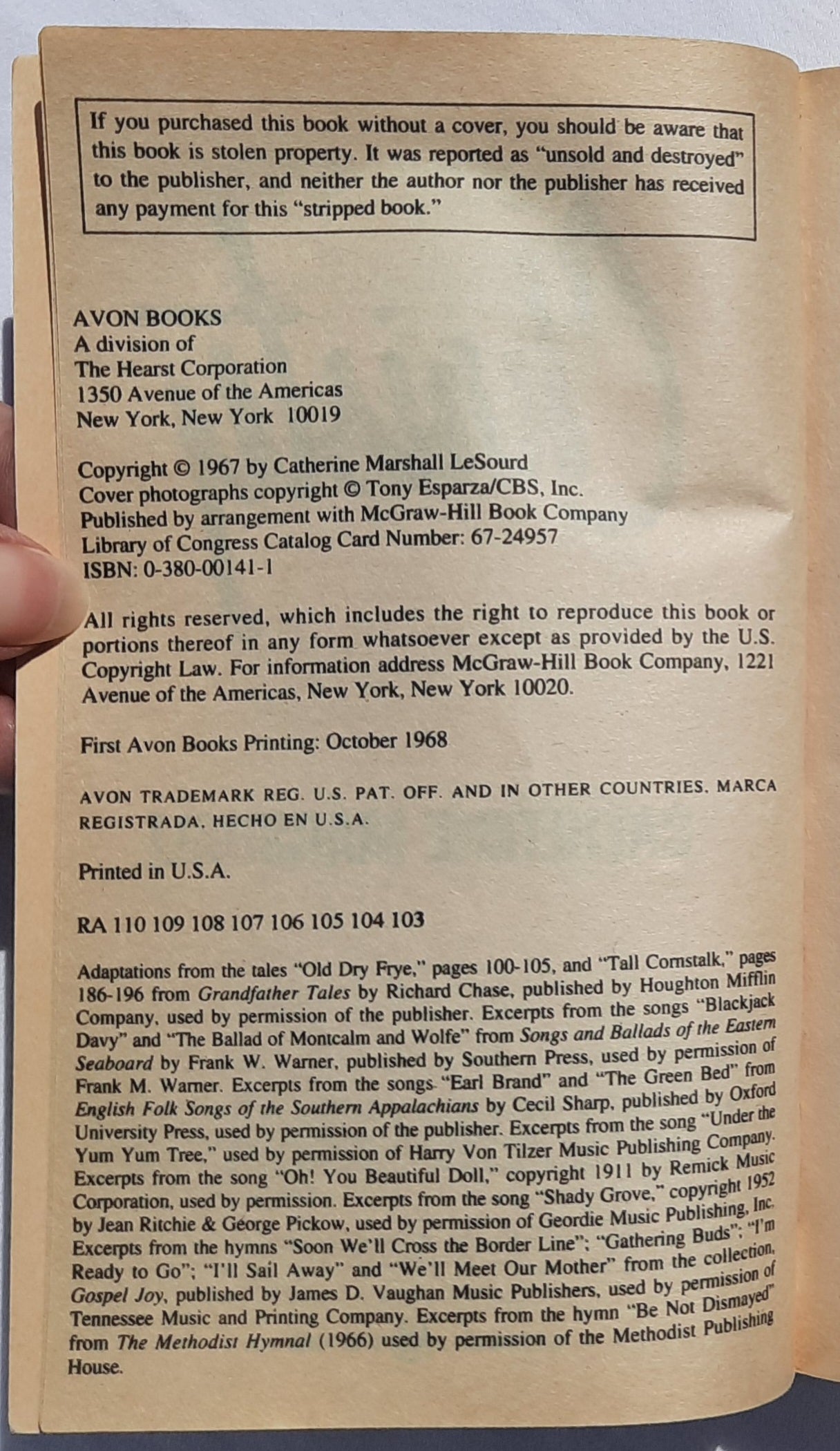 Christy by Catherine Marshall (Very good, 2006, Pbk, 558 pages, Avon Books)