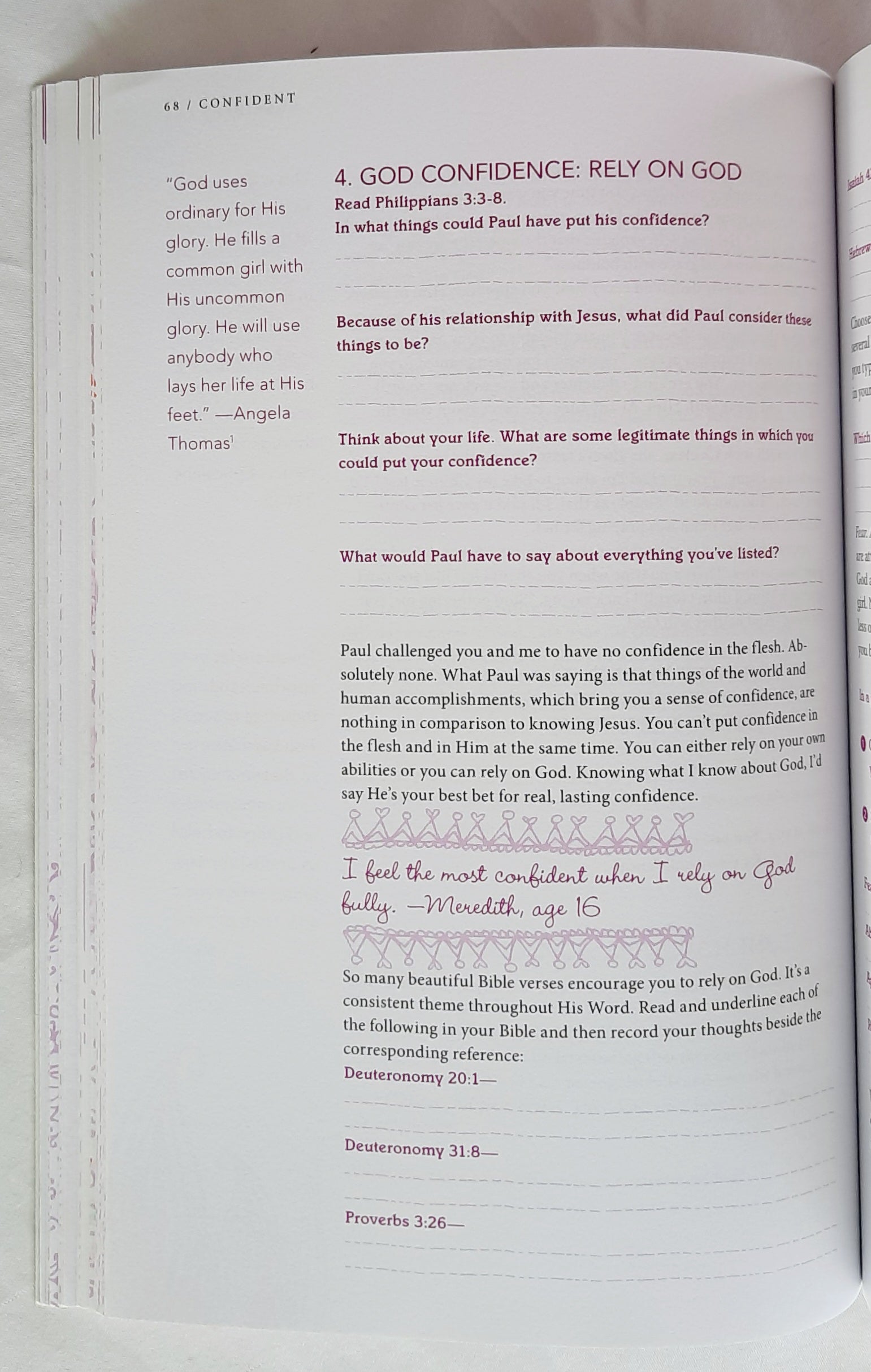 Confident is a 6-session Bible study for teen girls designed to teach them where to find the source of true confidence. God created His children―including teen girls―to walk in confidence. Unfortunately, when Eve at that forbidden fruit, the confidence God created in girls was replaced by shame, insecurity, and the need for acceptance. Fortunately, Christ came to restore a girl’s confidence through a relationship with Him. Through an everyday connection and despite an everyday battle, girls can walk in daring confidence, not because of anything the world has to offer, but because of Christ’s indwelling presence.