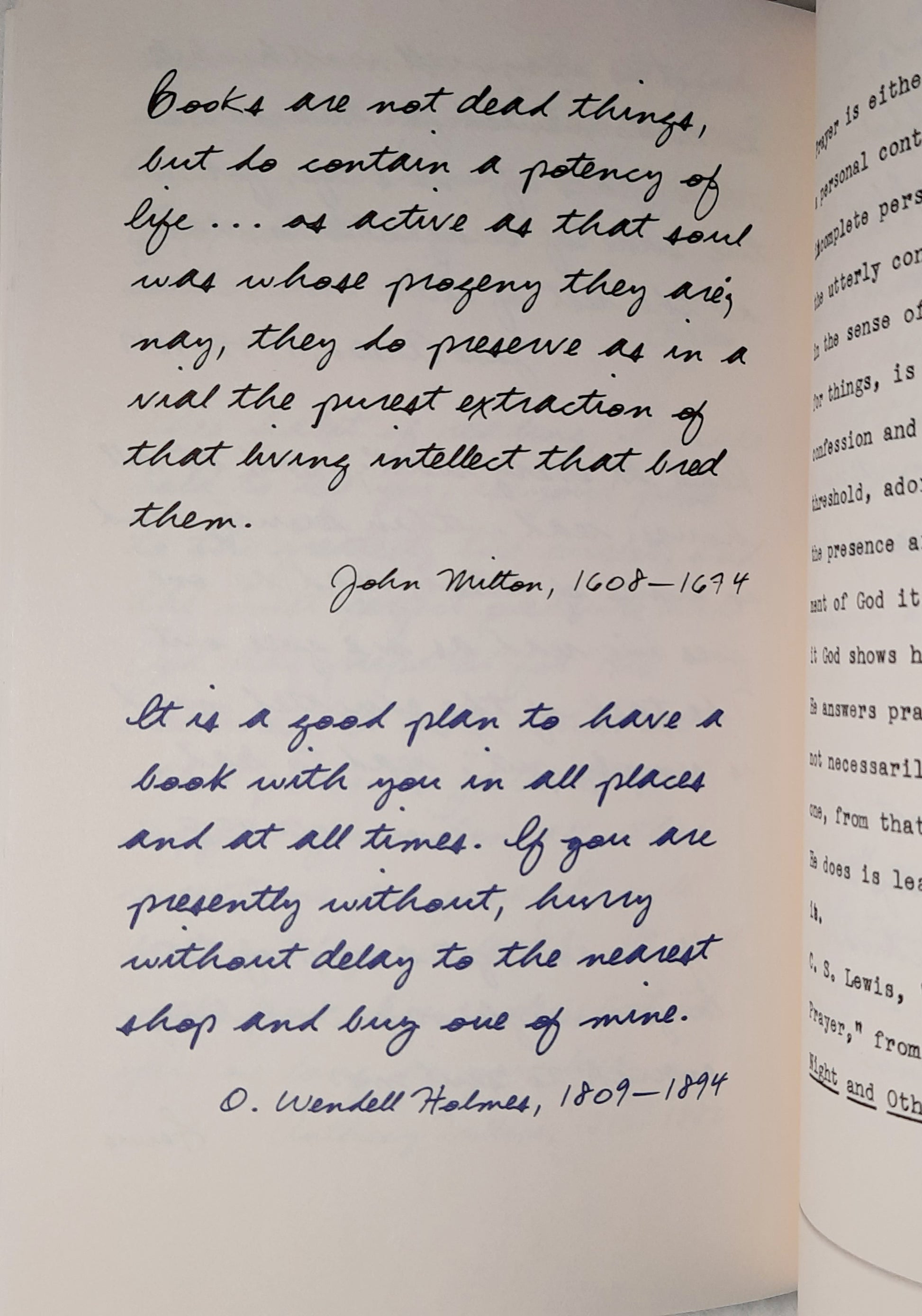 Written in Father Tim Kavanagh's own hand, this wonderful collection of quotes brings to life the personal reflections of Mitford's beloved Episcopal priest. Here Father Tim has carefully recorded his favorite quotes from a variety of thinkers, philosophers, and poets whom he has admired over the years. Next to the quotes are Father Tim's personal comments, scribblings, and doodlings.