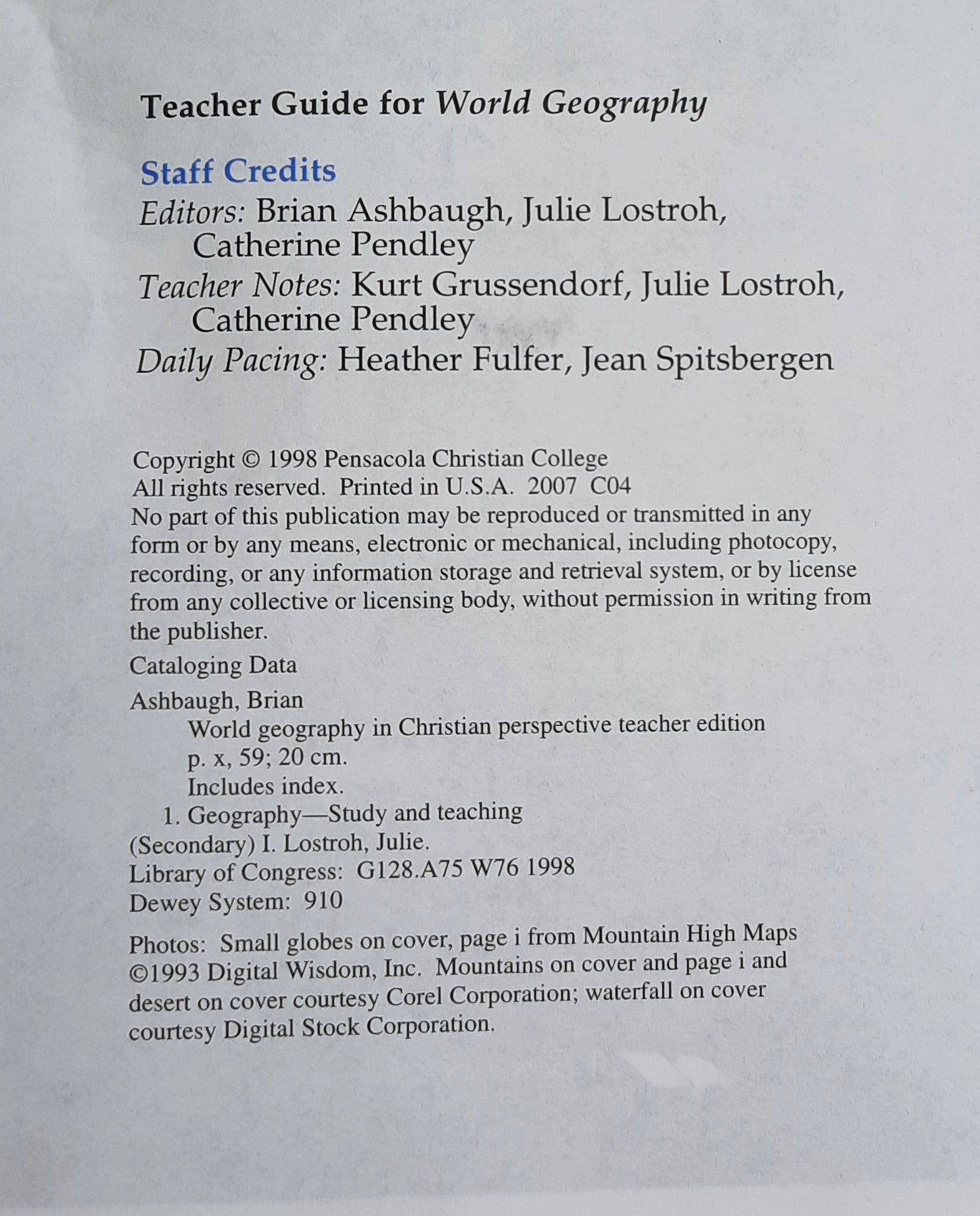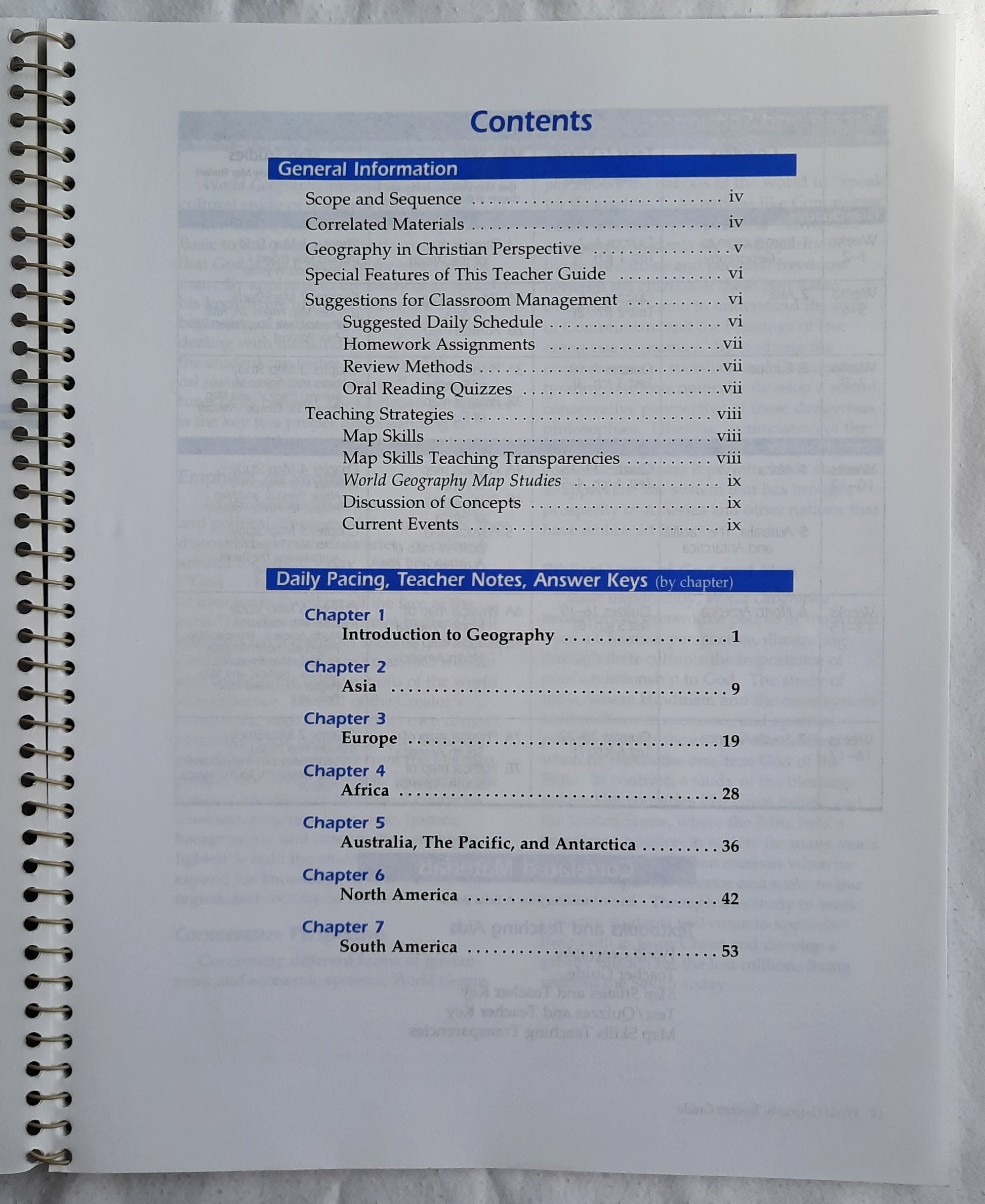 Abeka World Geography in Christian Perspective Teacher Guide (Very Good, 72 pages, Spiral Pbk)