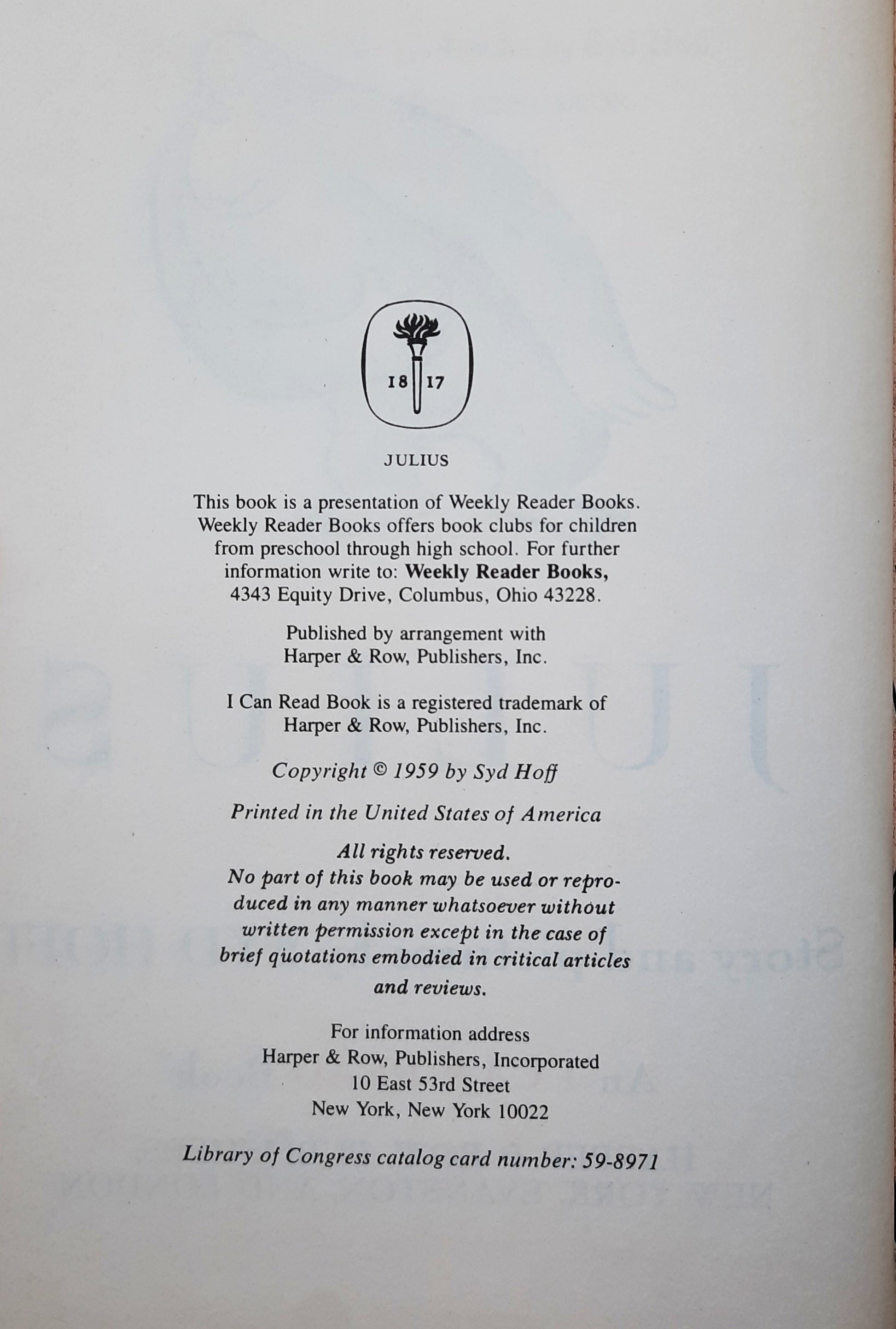 Julius by Syd Hoff (Good, 1959, HC, 64 pages, Weekly Reader Books)