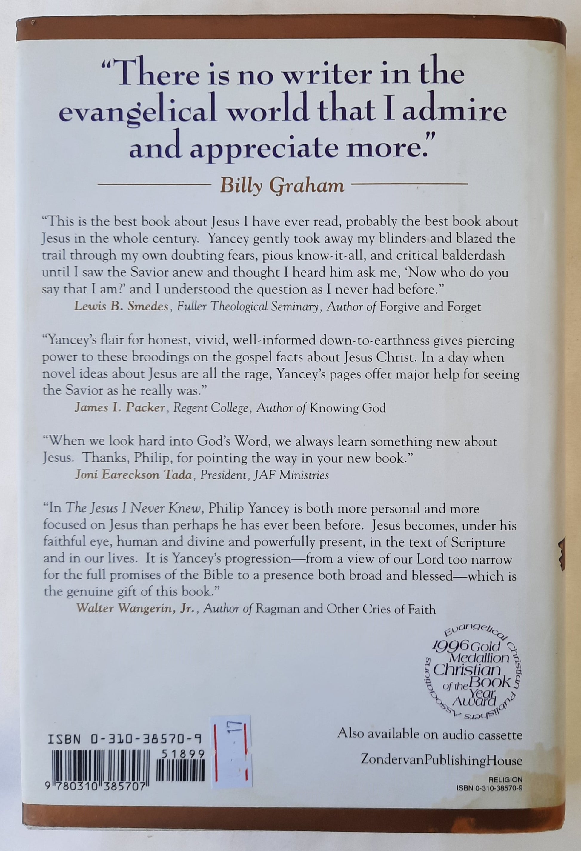 From the manger in Bethlehem to the cross in Jerusalem, Yancey presents a complex character who generates questions as well as answers; a disturbing and exhilarating Jesus who wants to radically transform your life and stretch your faith. The Jesus I Never Knew uncovers a Jesus who is brilliant, creative, challenging, fearless, compassionate, unpredictable, and ultimately satisfying.