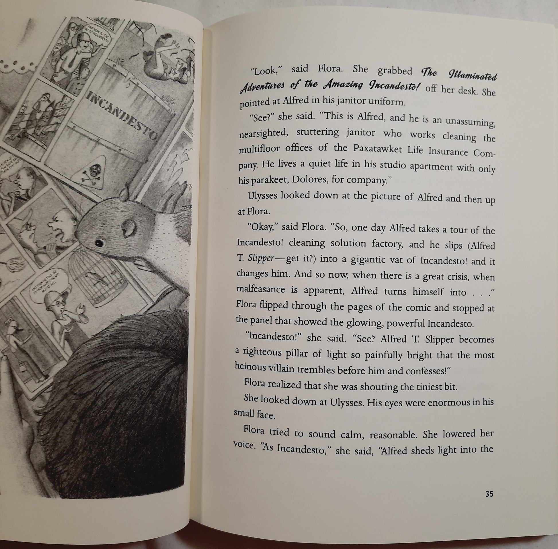 It begins, as the best superhero stories do, with a tragic accident that has unexpected consequences. The squirrel never saw the vacuum cleaner coming, but self-described cynic Flora Belle Buckman, who has read every issue of the comic book Terrible Things Can Happen to You!, is just the right person to step in and save him. What neither can predict is that Ulysses (the squirrel) has been born anew, with powers of strength, flight, and misspelled poetry — and that Flora will be changed too, as she discovers the possibility of hope and the promise of a capacious heart.