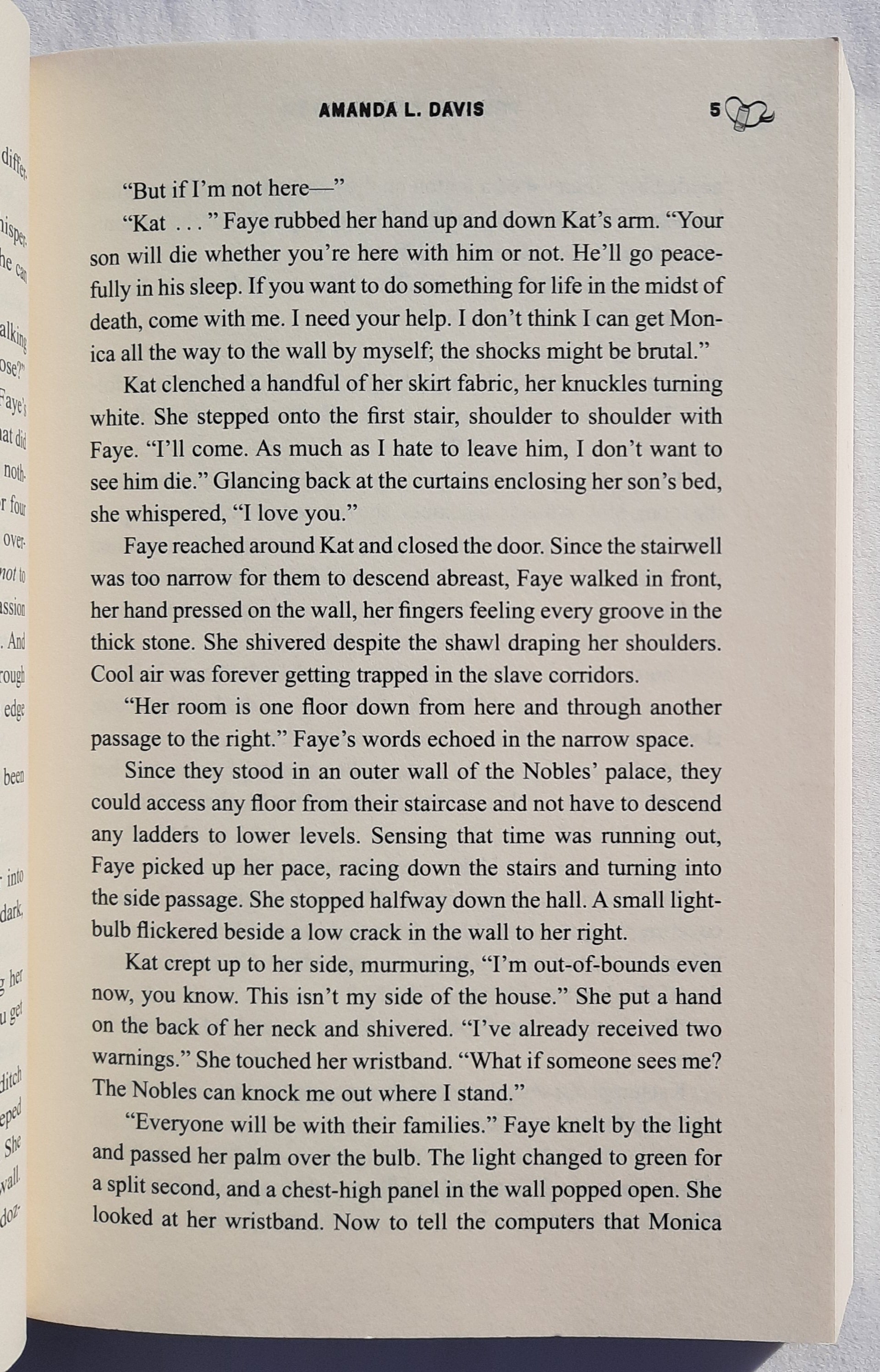 With microchips implanted in their skulls at birth, the slaves of Cantral and Cillineese have labored under the tyrannical rule of the nobles and their computers for centuries. Monica, a noble who avoided the implanting and escaped a death sentence at the age of four, is now sixteen and is in hiding. She lives with the slaves inside the walls of the Cantral palace, pretending to be one of them while the slave council plots a way to use her chip-less state to destroy the all-powerful computers that strike down any hint of rebellion.