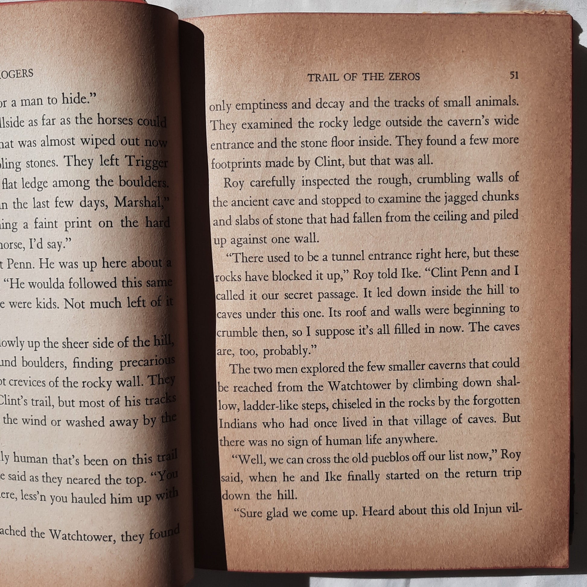 “Roy Rogers on the Trail of the Zeros” is a captivating Western adventure that takes readers on a thrilling journey alongside the legendary cowboy, Roy Rogers. Written by Packer Elton and illustrated by Al Gleicher, this book was first published in 1954.