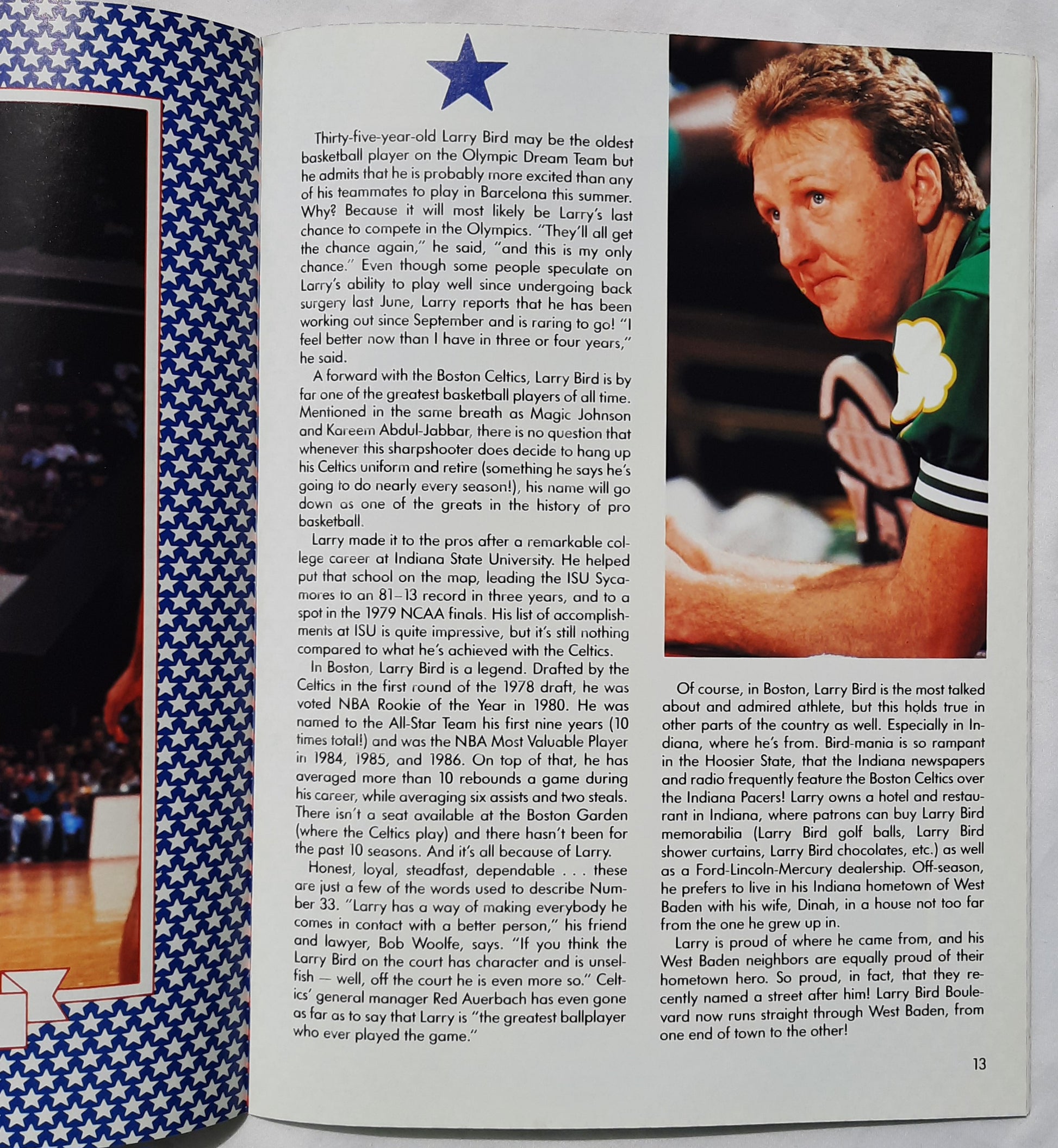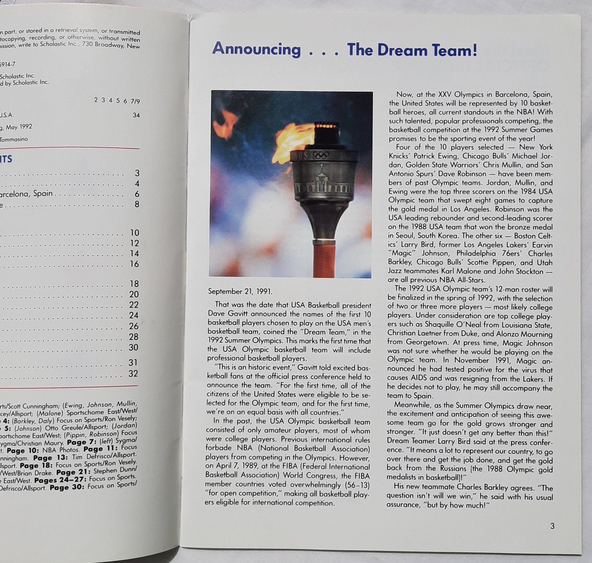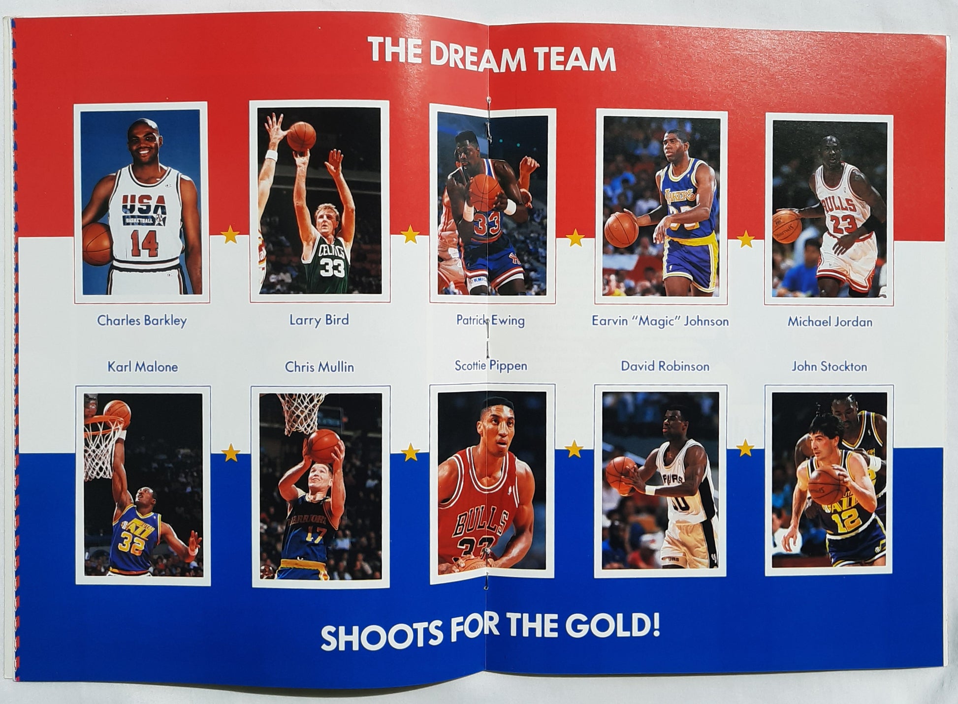 Discusses the Barcelona Olympics and the rules and history of basketball as an Olympic sport, and introduces the nine National Basketball Association superstars on the United States Olympic team.