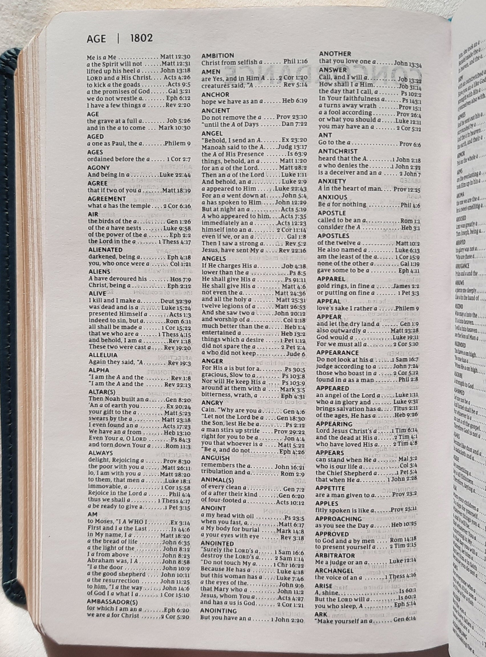 - Concordance for looking up a word’s occurrences throughout the Bible