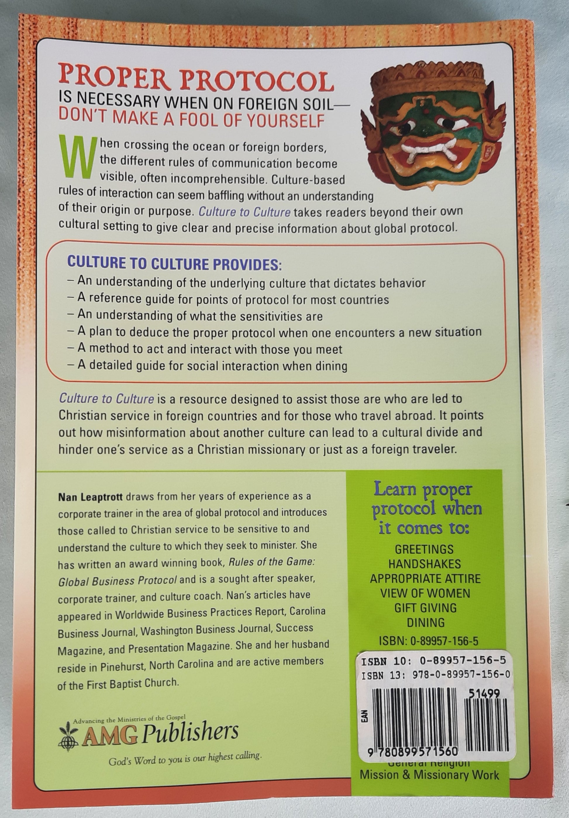 Culture to Culture: Mission Trip Do's and Don'ts by Nan Leaptrott (Very good, 2005, Pbk, 322 pages, AMG Publishers)