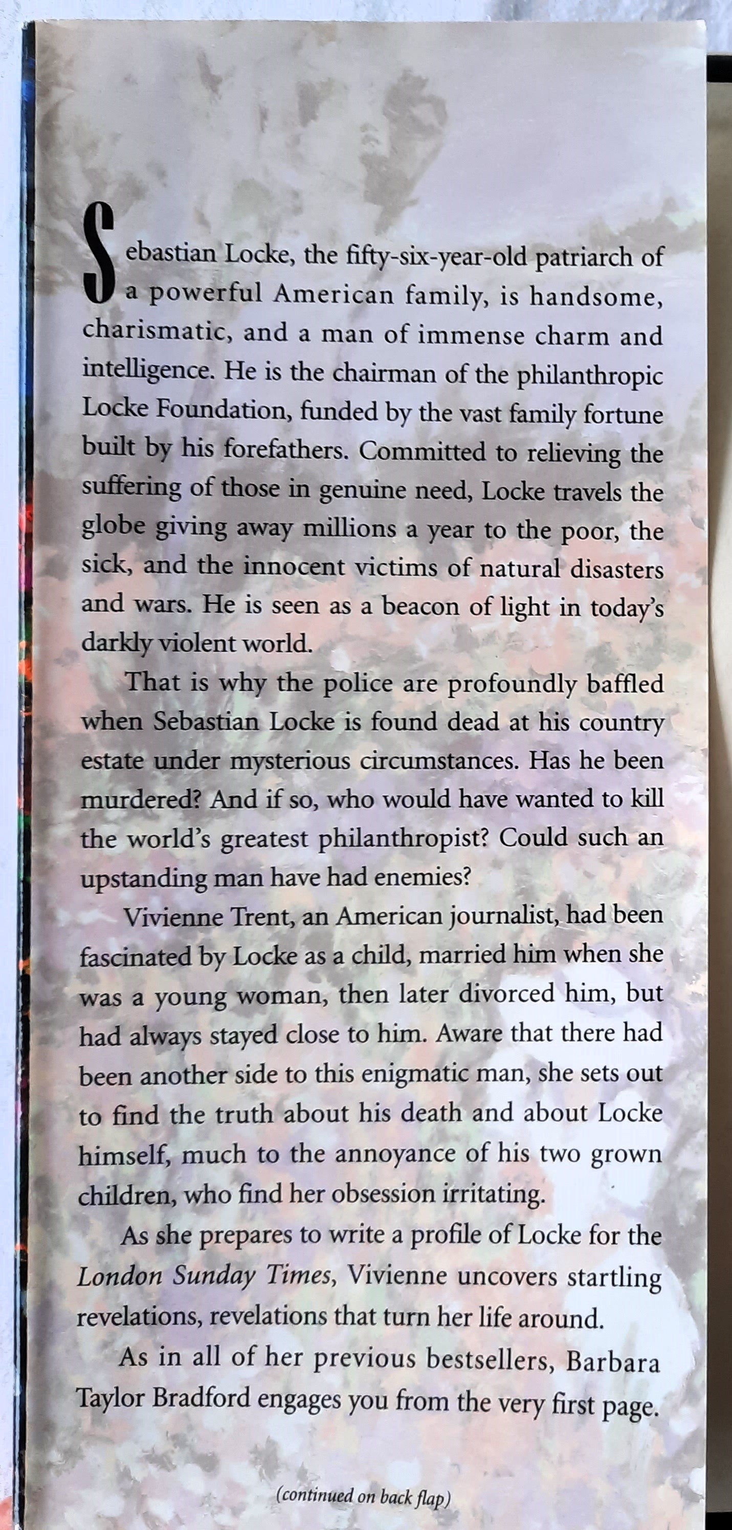 Sebastian Locke, the fifty-six-year-old patriarch of a powerful American family, is handsome, charismatic, and a man of immense charm and intelligence. He is the chairman of the philanthropic Locke Foundation, funded by the vast family fortune built by his forefathers. Committed to relieving the suffering of those in genuine need, Locke travels the globe giving away millions a year to the poor, the sick, and the innocent victims of natural disasters and wars. He is seen as a beacon of light in today's darkly violent world.