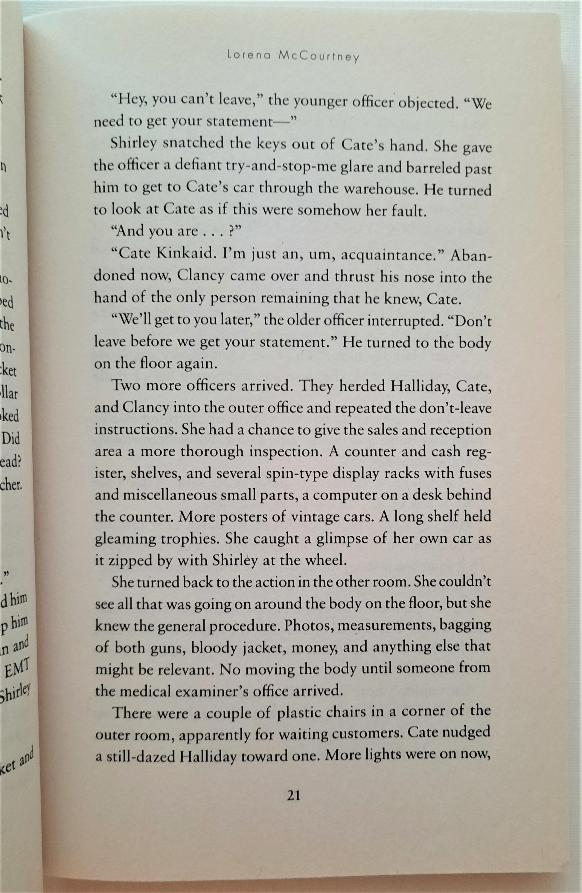 Cate Kinkaid arrives at H&B Vintage Auto Restorations to give a friend a ride. But, as usual, trouble finds Cate even there--this time in the form of one dead man, one wounded man, and what appears to be a pretty obvious case of self-defense.