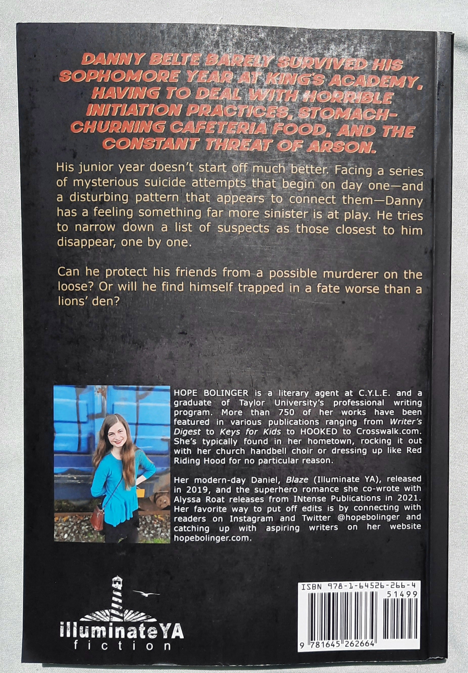Danny Belte barely survived his sophomore year at King’s Academy, having to deal with horrible initiation practices, stomach-churning cafeteria food, and the constant threat of arson. His junior year doesn’t start off much better. Facing a series of mysterious suicide attempts that begin on day one—and a disturbing pattern that appears to connect them—Danny has a feeling something far more sinister is at play. He tries to narrow down a list of suspects as those closest to him disappear, one by one. Can he protect his friends from a possible murderer on the loose? Or will he find himself trapped in a fate worse than a lions’ den?
