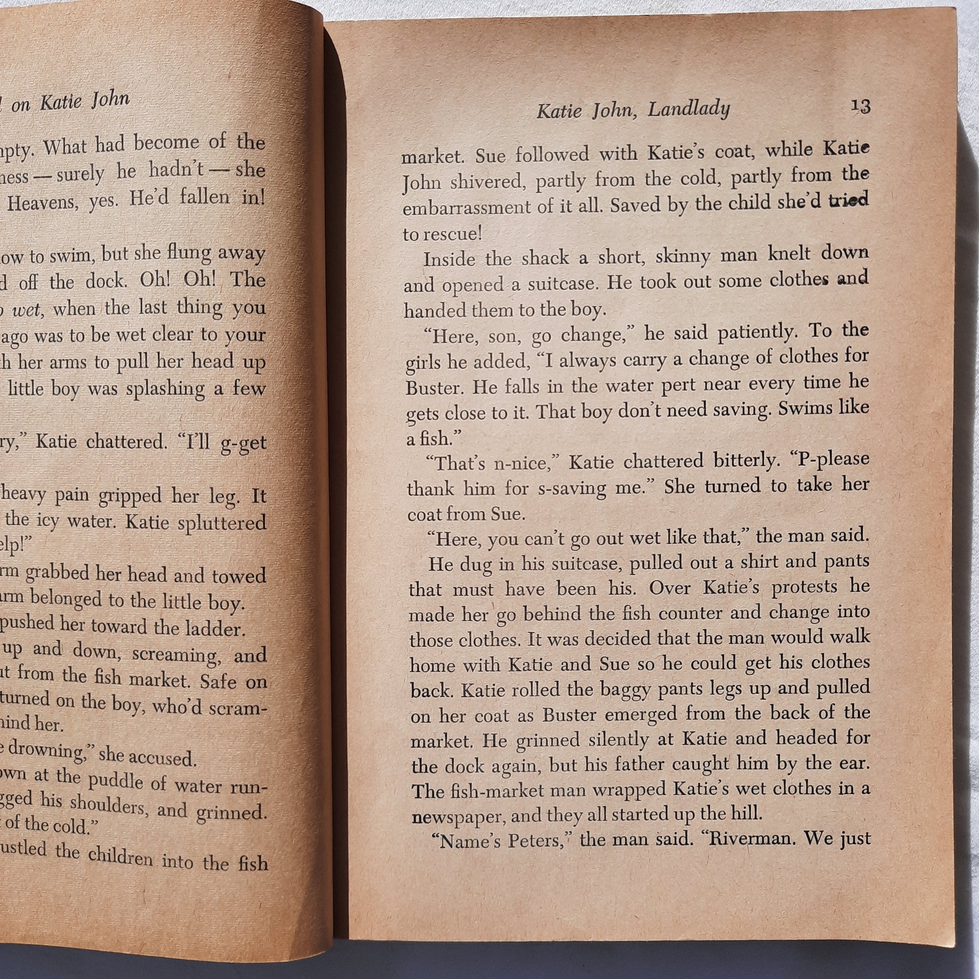 Katie John is a young girl with an inquisitive and independent mind. This delightful classic story by Mary Calhoun brings her to life in her daily adventures exploring her new home and neighborhood. There is more than one surprise as Katie John follows clues, makes new friends, and discovers talents she didn't know she had. Wonderful drawings by Paul Frame illustrate the work.