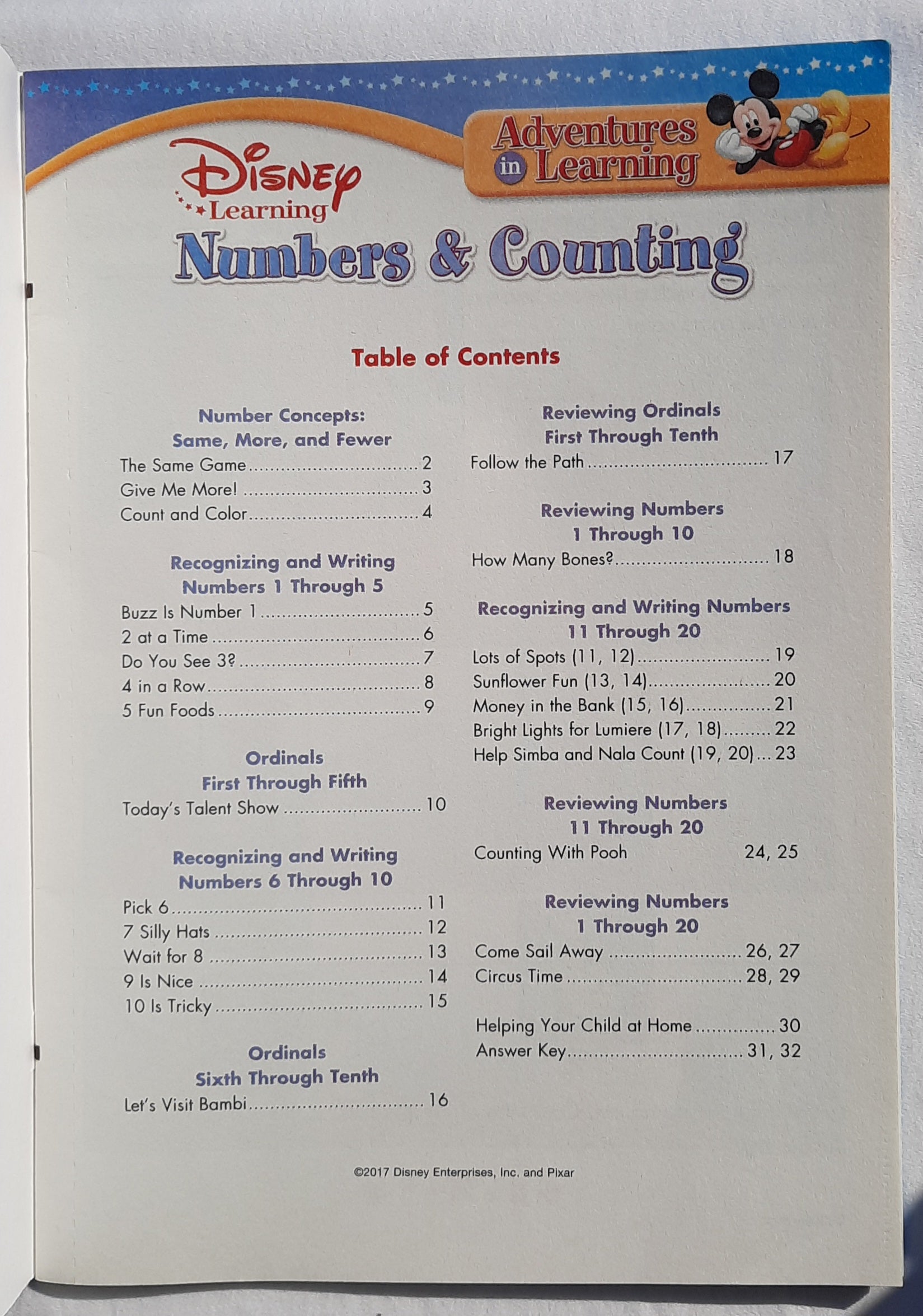 Disney Adventures in Learning: Numbers & Counting by Bendon (Like New, 2017, Pbk)