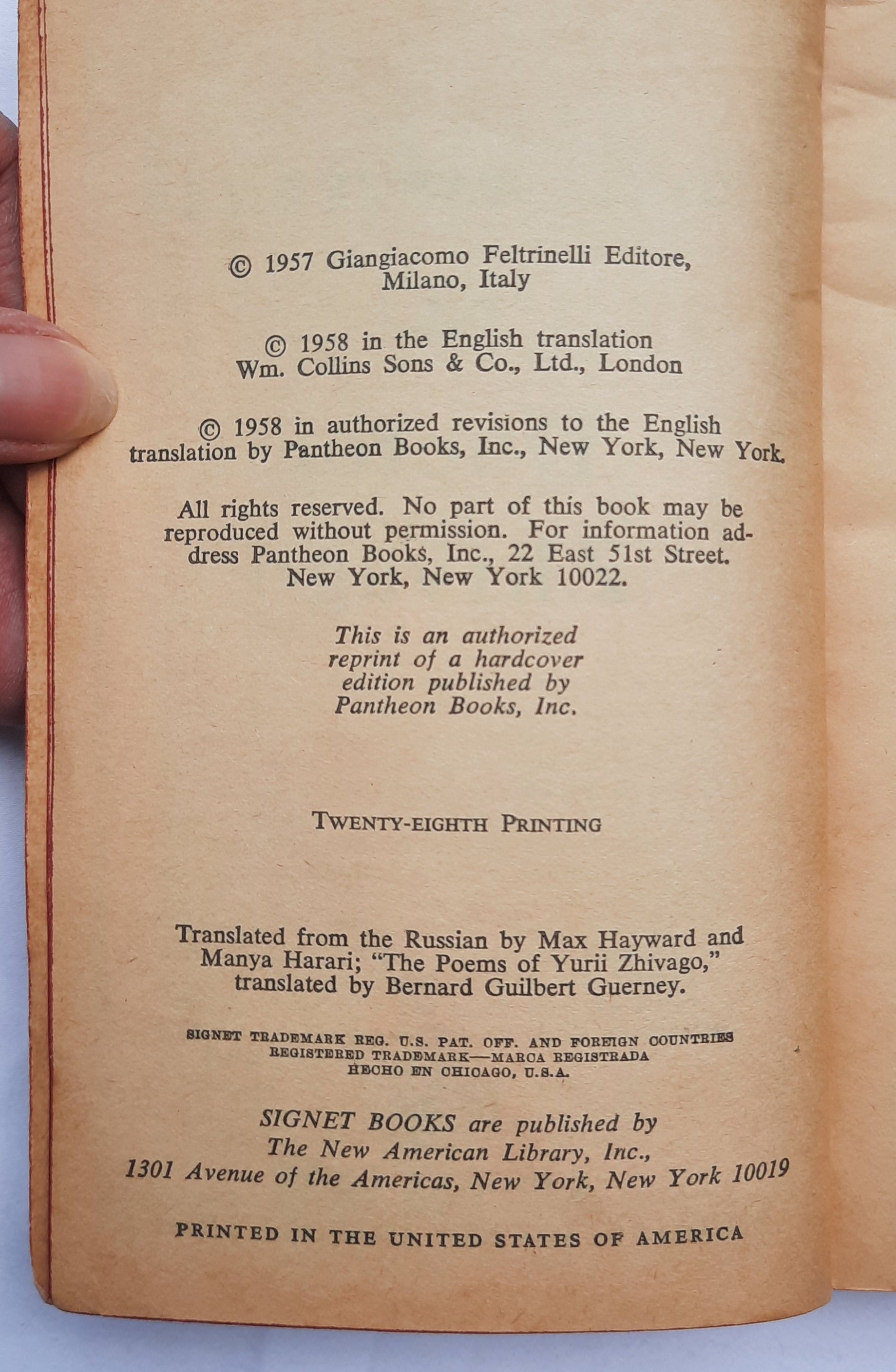 Doctor Zhivago by Boris Pasternack (Acceptable, 1958, Pbk, 456 pages, Signet Book)