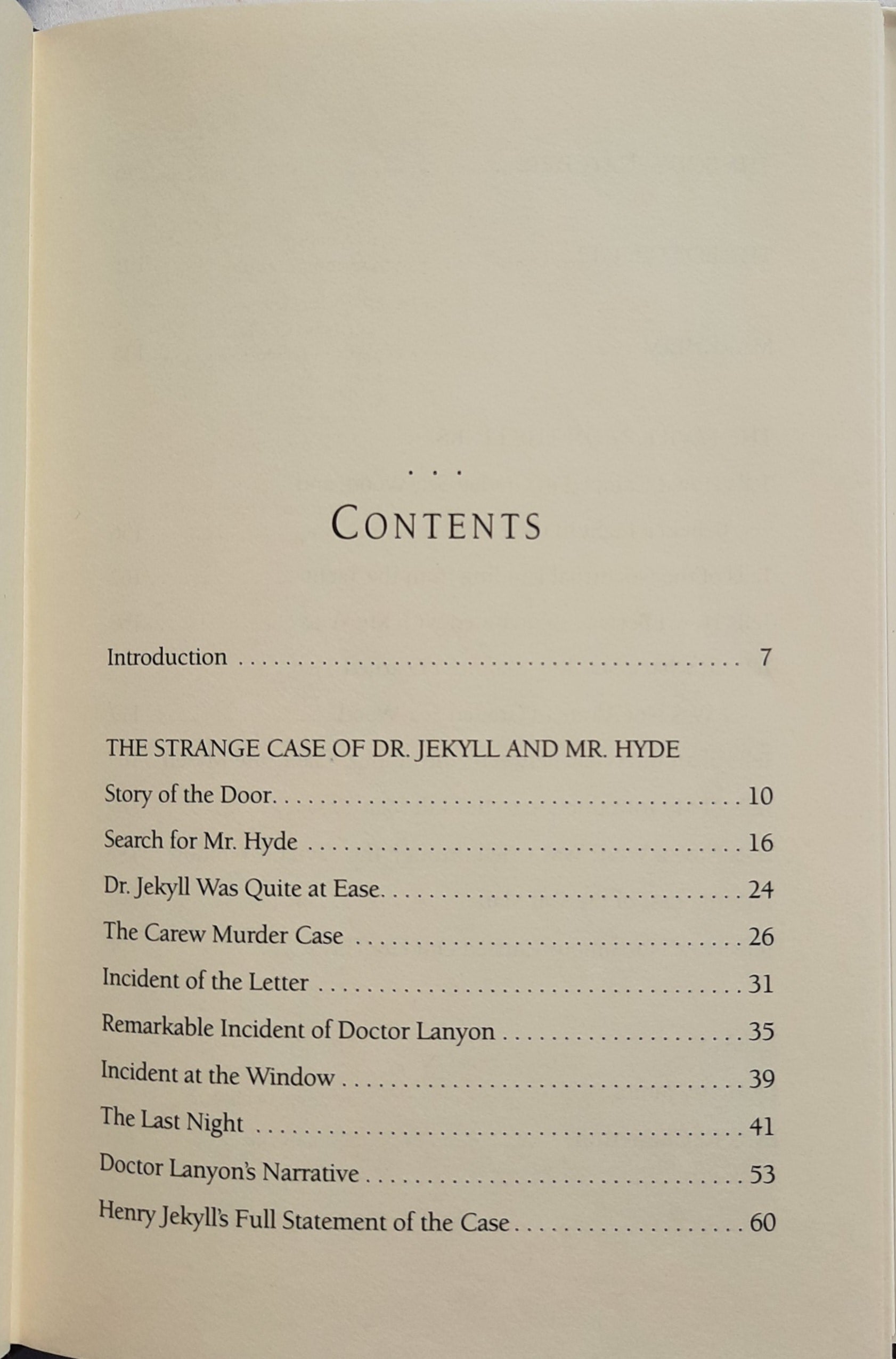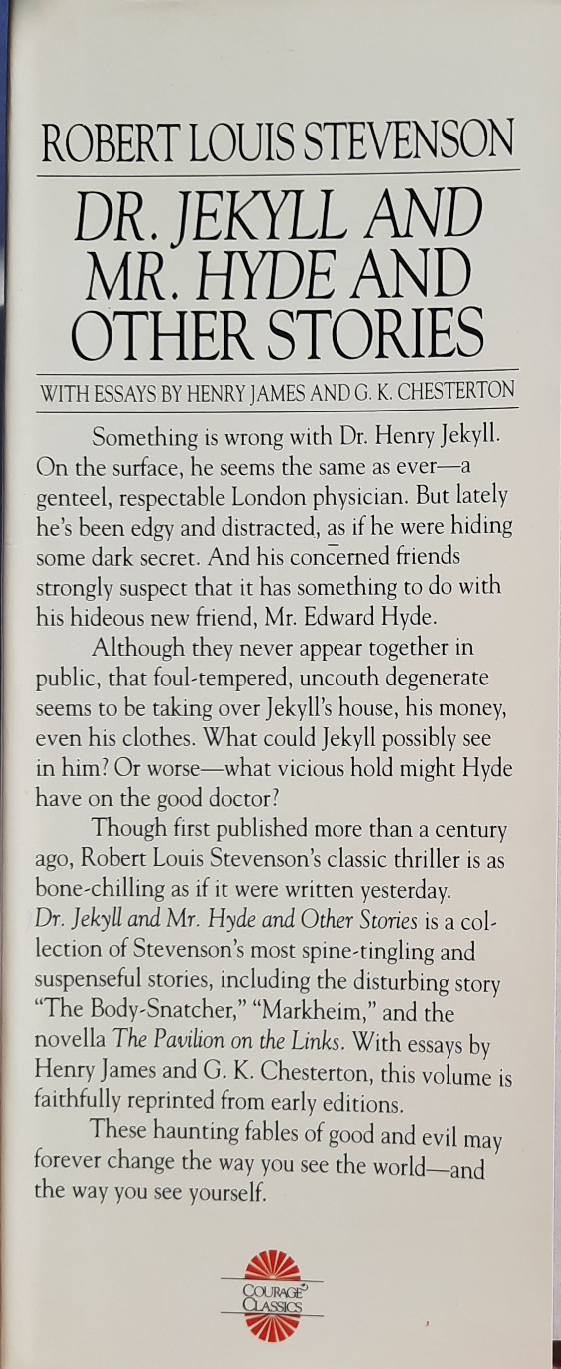 Also includes the short pieces "The Body Snatcher," "The Bottle Imp," "Markheim," and "The Pavillion on the Links," as well as an essay on Jekyll by Henry James and one on Stevenson by G.K Chesterton.