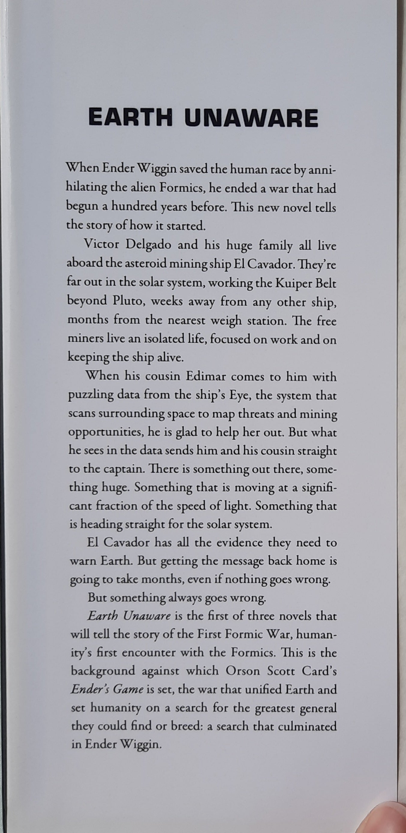 A hundred years before Ender's Game, humans thought they were alone in the galaxy. Humanity was slowly making their way out from Earth to the planets and asteroids of the Solar System, exploring and mining and founding colonies.