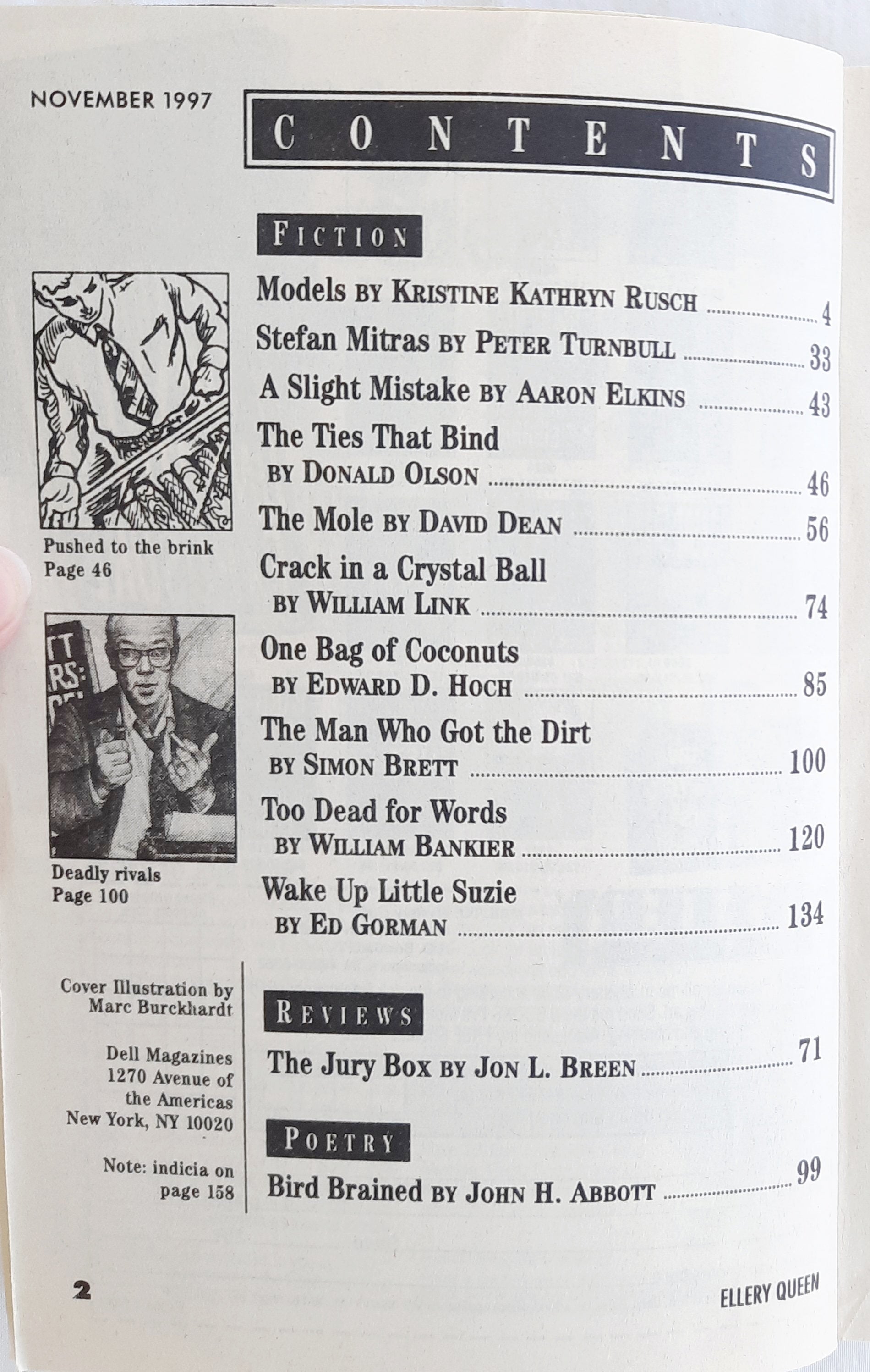 Ellery Queen Mystery Magazine November 1997 by Dell Magazine (Very Good, Pbk, 158 pages)