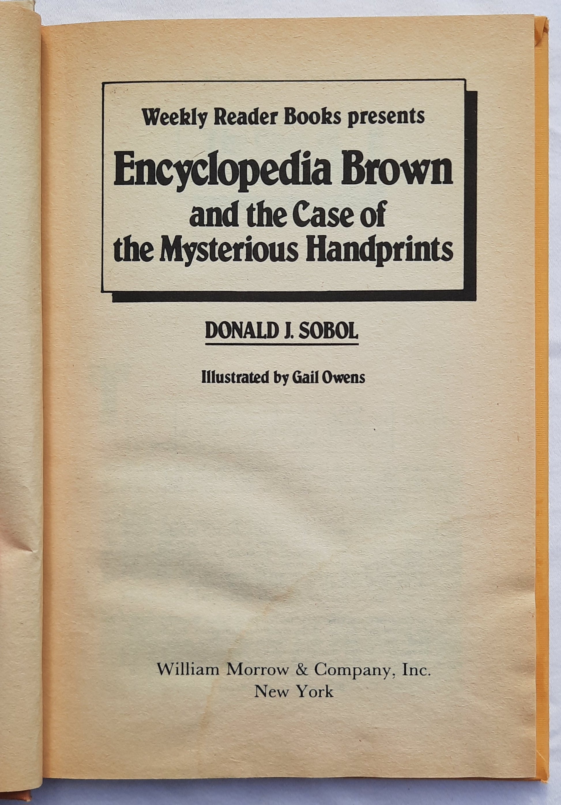 Encyclopedia Brown and the Case of the Mysterious Handprints by Donald J. Sobol (Good, 1985, HC, 91 pages, William Morrow & Co.