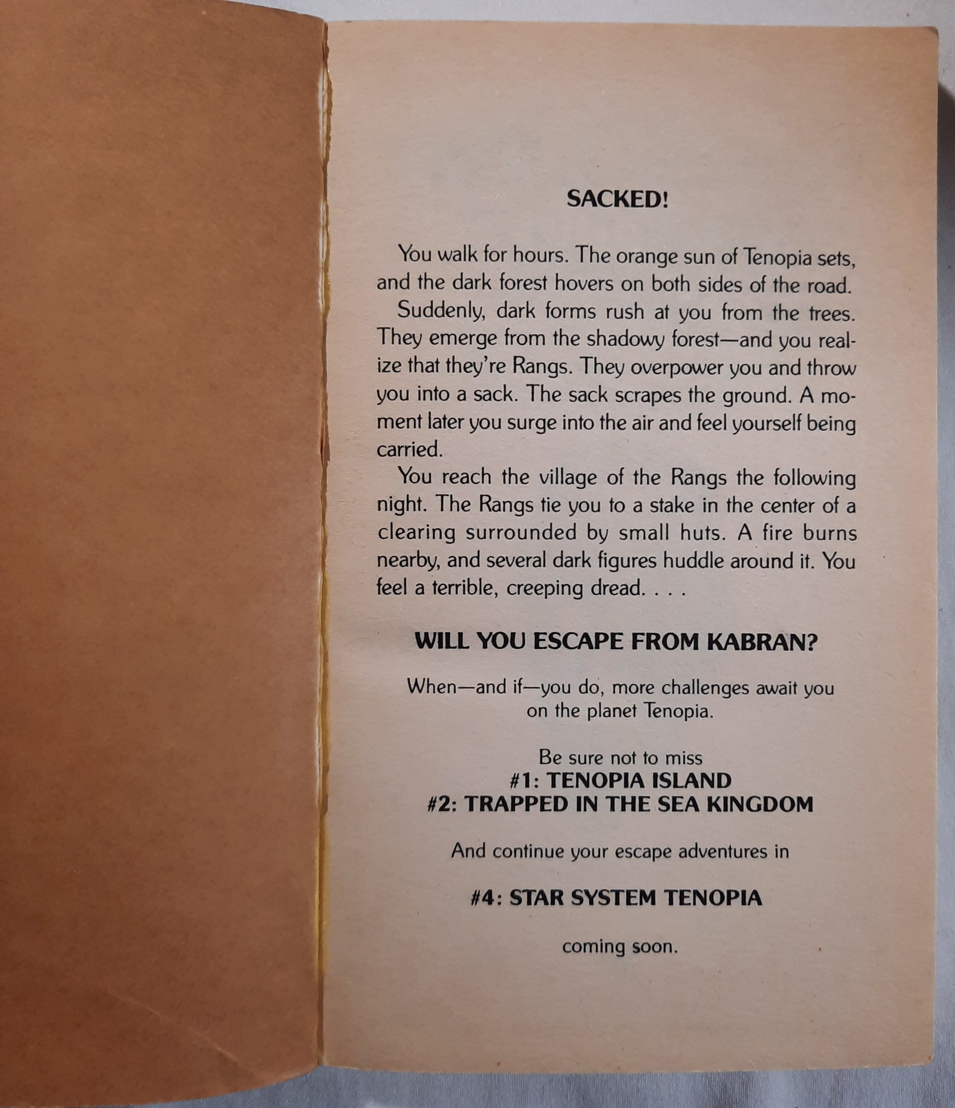 Escape from Tenopia: Terror on Kabran by Richard Brightfield (Good, 1986, Pbk, 129 pages, Bantam)