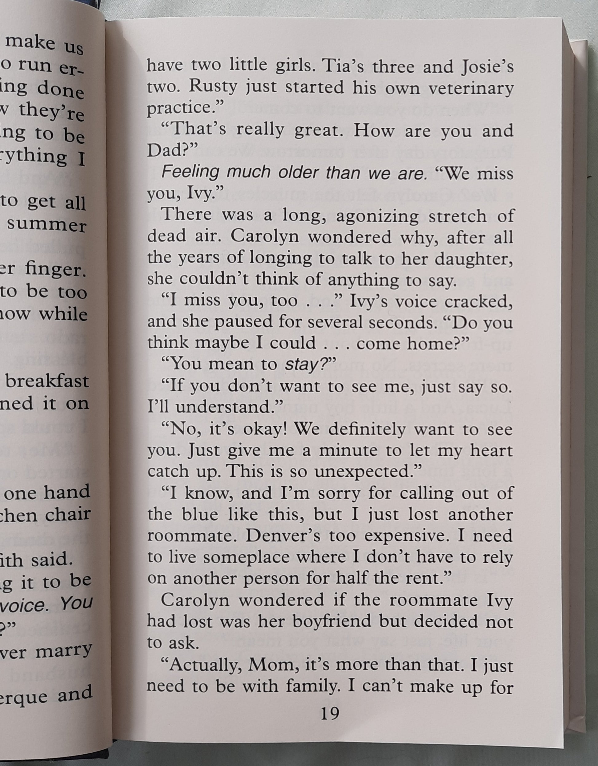 Now, after ten years of numbing her guilt with drugs, she' s finally clean. The single mom of a seven-year-old son, Montana, Ivy returns home to the tiny town of Jacob' s Ear, hoping for courage to reveal the shocking truth of her past and be rid of this baggage forever.