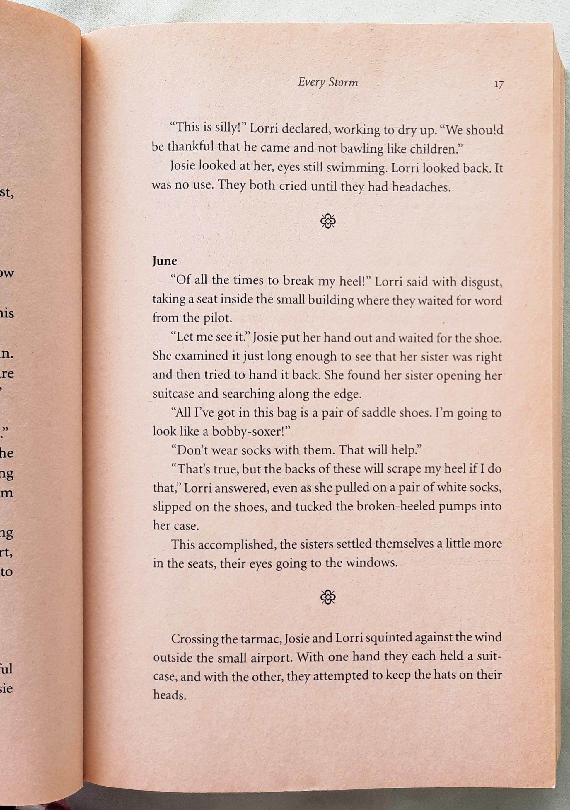 1945, WWII--When Lieutenant Donovan Riggs experiences trouble with his PT boat, the sailors of Every Storm make an unscheduled stop...and a surprising discovery.