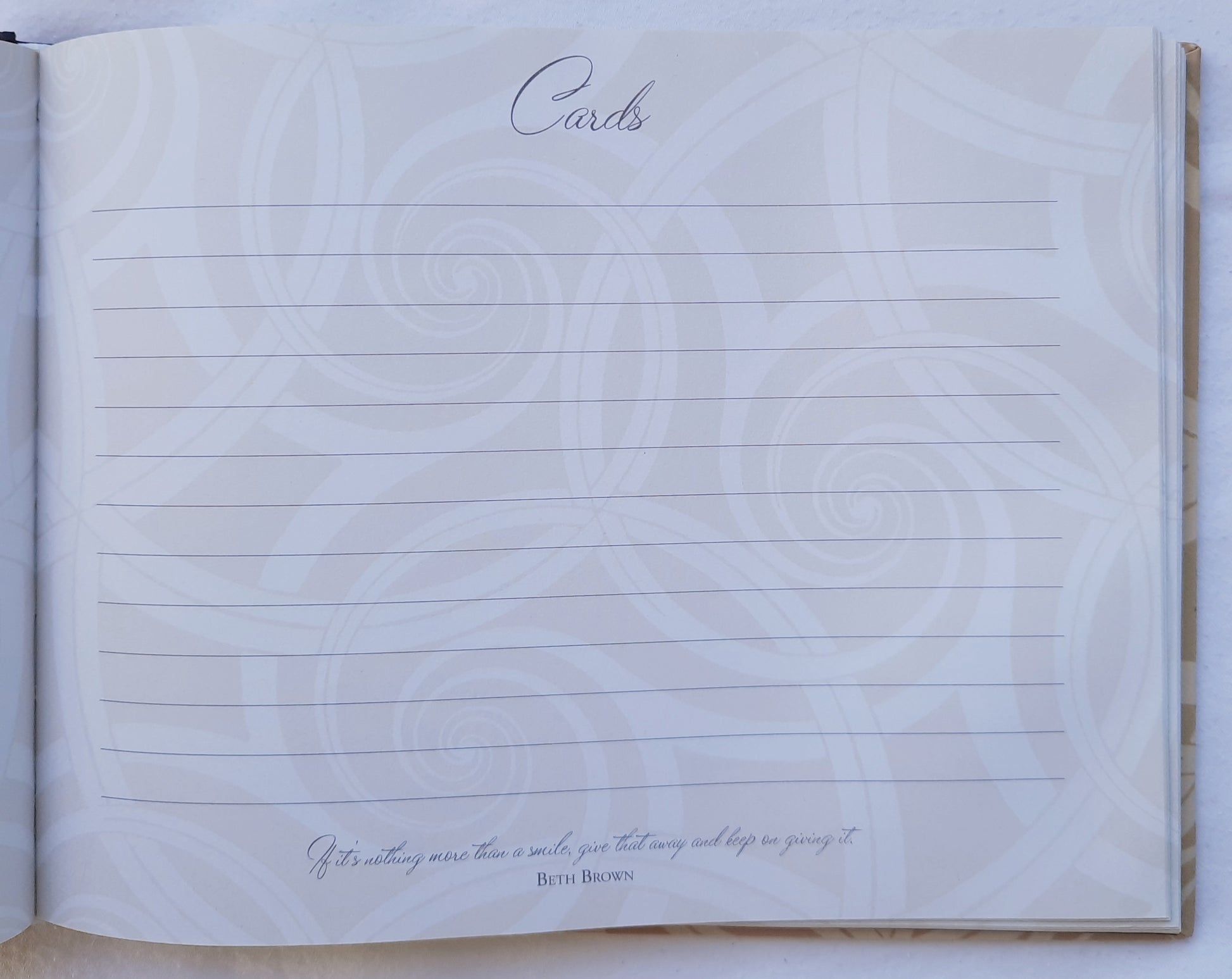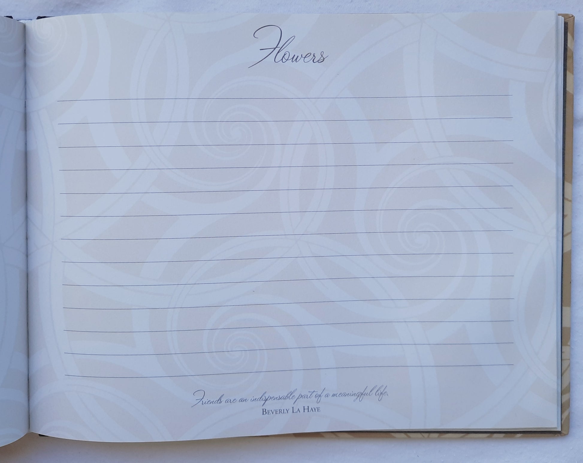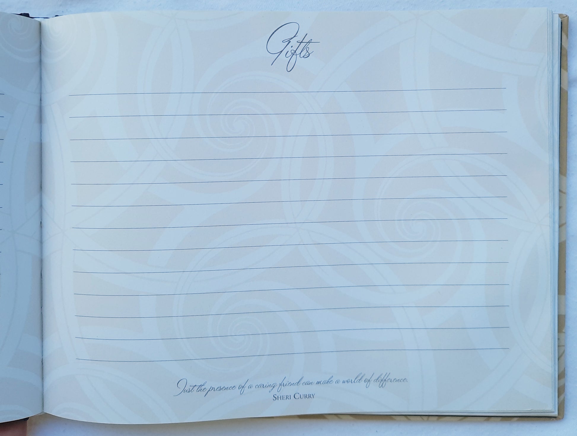 - Sections include: Guest Sign-in; Cards Received; Gifts Received; Flowers Received; Food Received