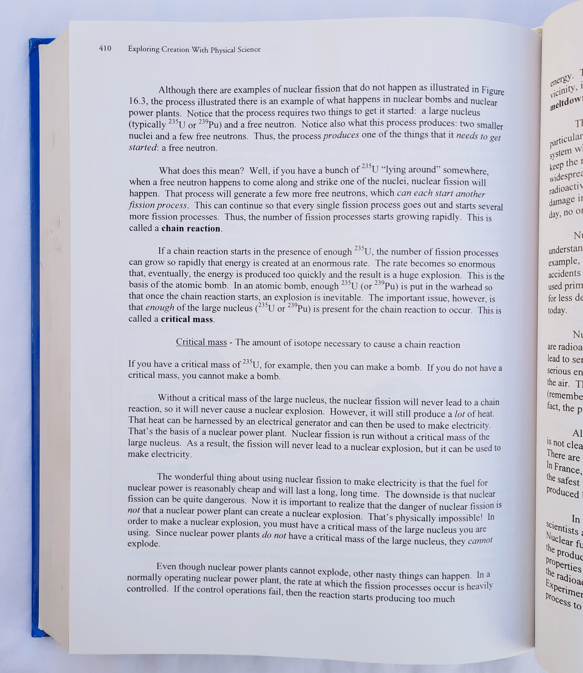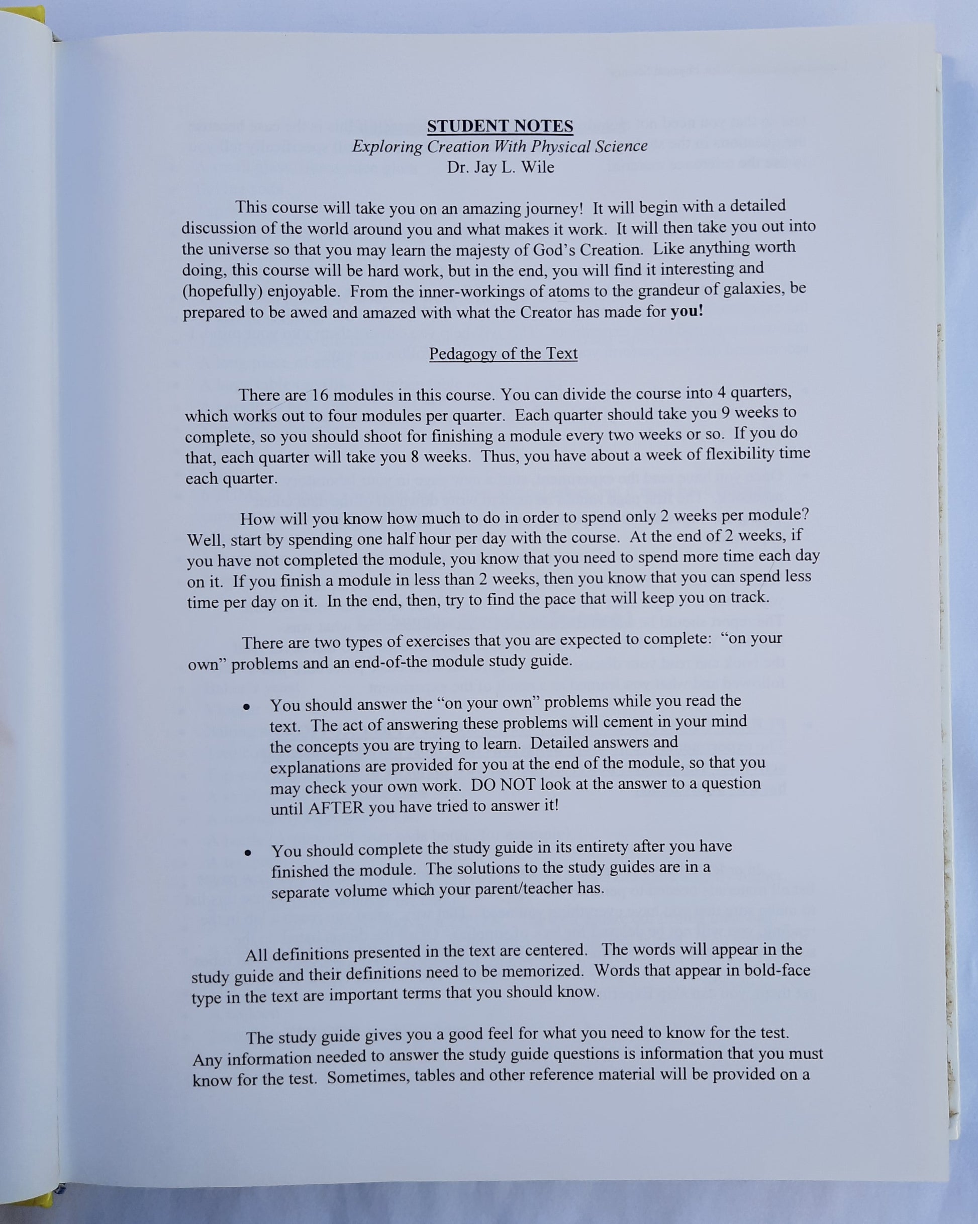 Exploring Creation With Physical Science provides a detailed introduction to the physical environment and some of the basic laws that make it work. The fairly broad scope of the book provides the student with a good understanding of the earth's atmosphere, hydrosphere, and lithosphere. It also covers details on weather, motion, Newton's Laws, gravity, the solar system, atomic structure, radiation, nuclear reactions, stars, and galaxies.
