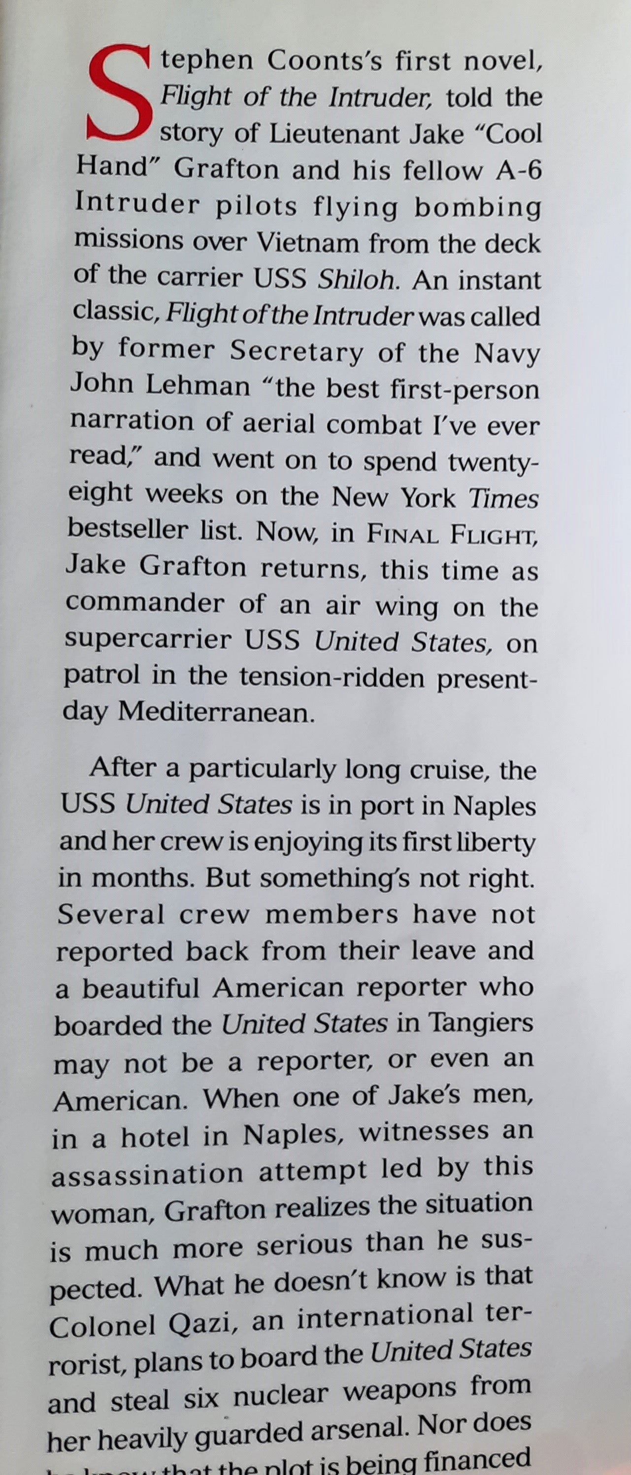 Final Flight by Stephen Coonts (Jake Grafton #3, Good, 1988, HC, 387 pages, Doubleday)