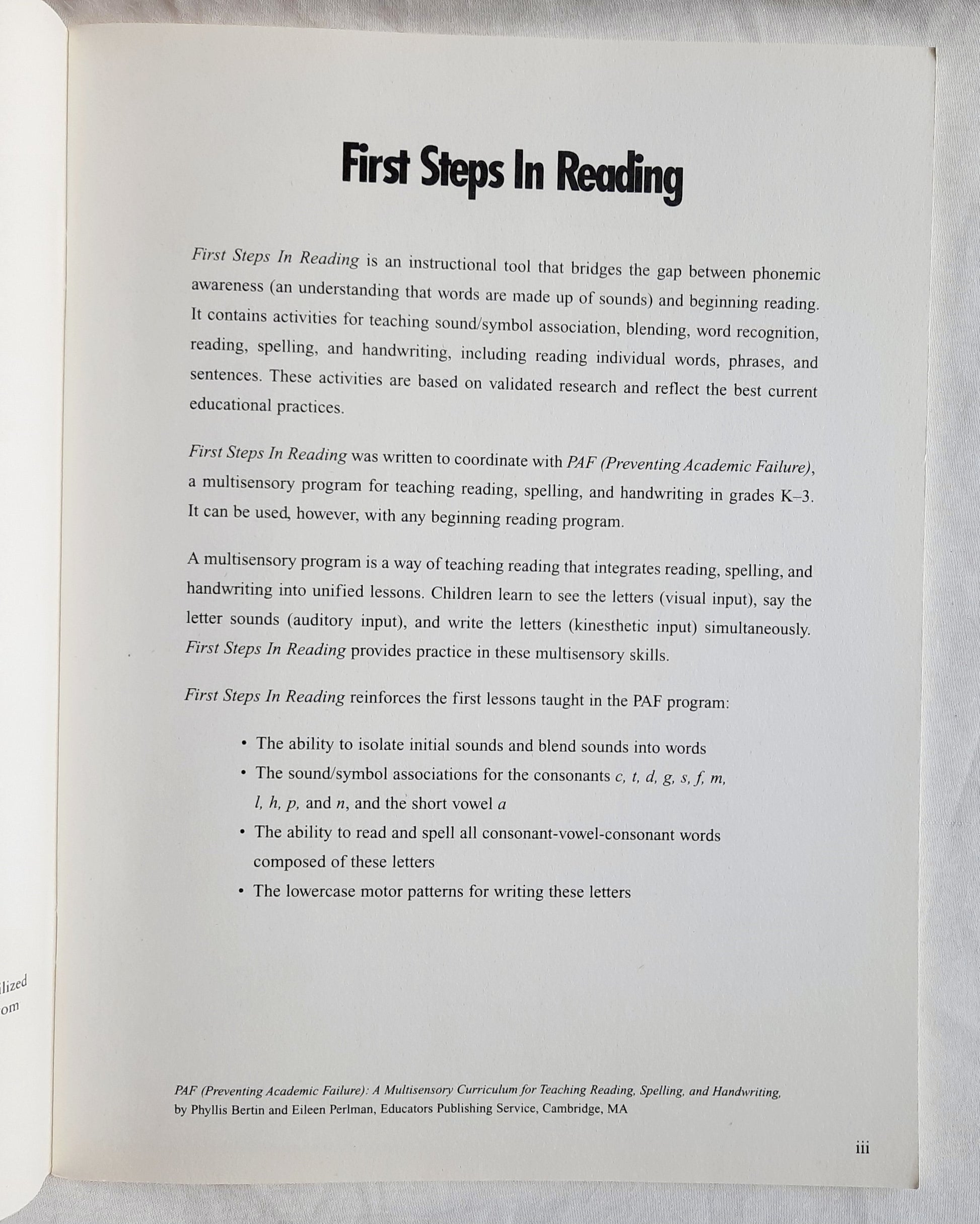 First Steps in Reading by Phyllis Bertin (New, 2001, Pbk, Educators Pub.)