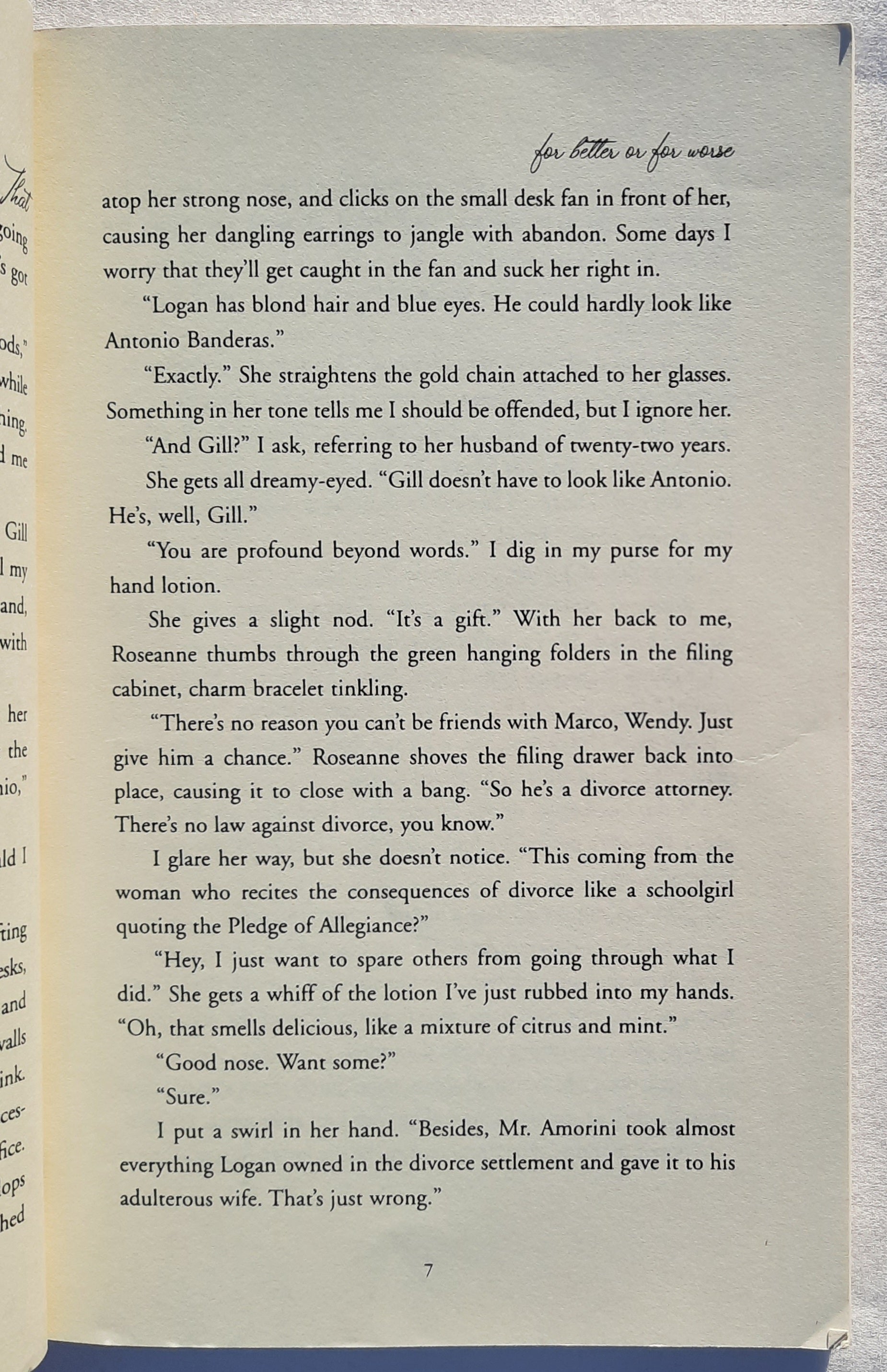Then the charming and incredibly frustrating Marco Amorini opens a legal practice--specializing in divorces--right next to her wedding chapel and stirs up everything. Wendy learns that perhaps there is such a thing as second chances in this hilarious story of the pleasures and pains of new love in midlife.