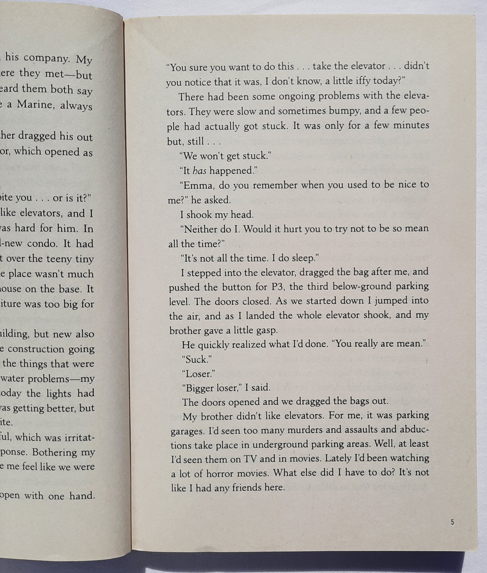Fifteen-year-old Emma has moved house with her ex-Marine mother and younger brother. It's a brand-new condo building, which explains the semi-regular power outages, as workers complete the units around them. So Emma isn't particularly concerned when the latest blackout hits just as they are preparing to leave town on a long weekend camping trip. But then the car won't start, and their cellphones appear dead -- and all the cars outside their building seem to be stalled in a long traffic jam ...