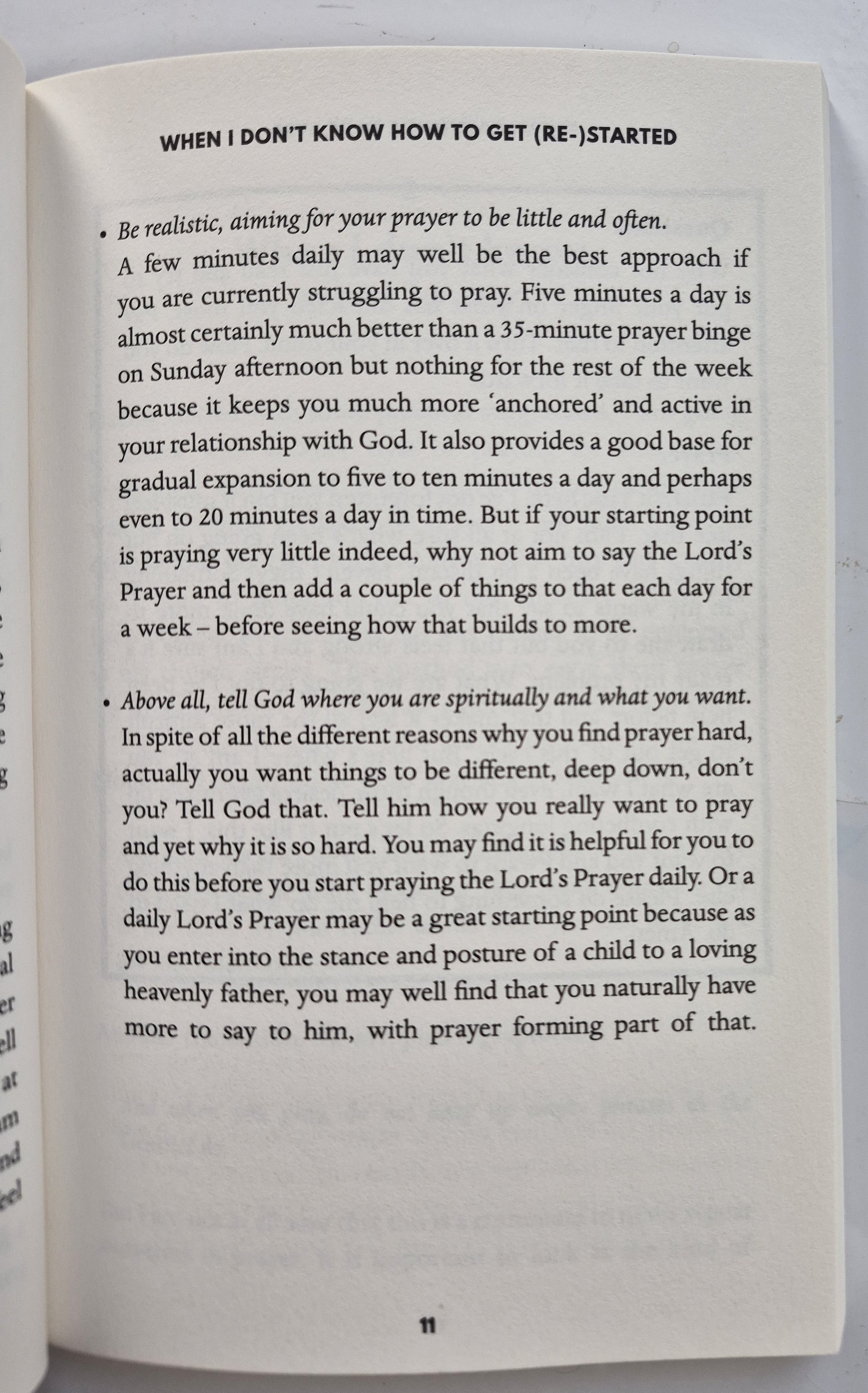 It can feel wrong to admit that having a conversation with someone we can't see can feel rather unusual. Prayer is one of those disciplines that we all know we should be doing more regularly and perhaps enjoying more than we are, but the reality is that it can be something even mature Christians find a struggle. Prayer doesn't come naturally to most of us which can leave us feeling guilty, stuck in a rut, or far away from God.