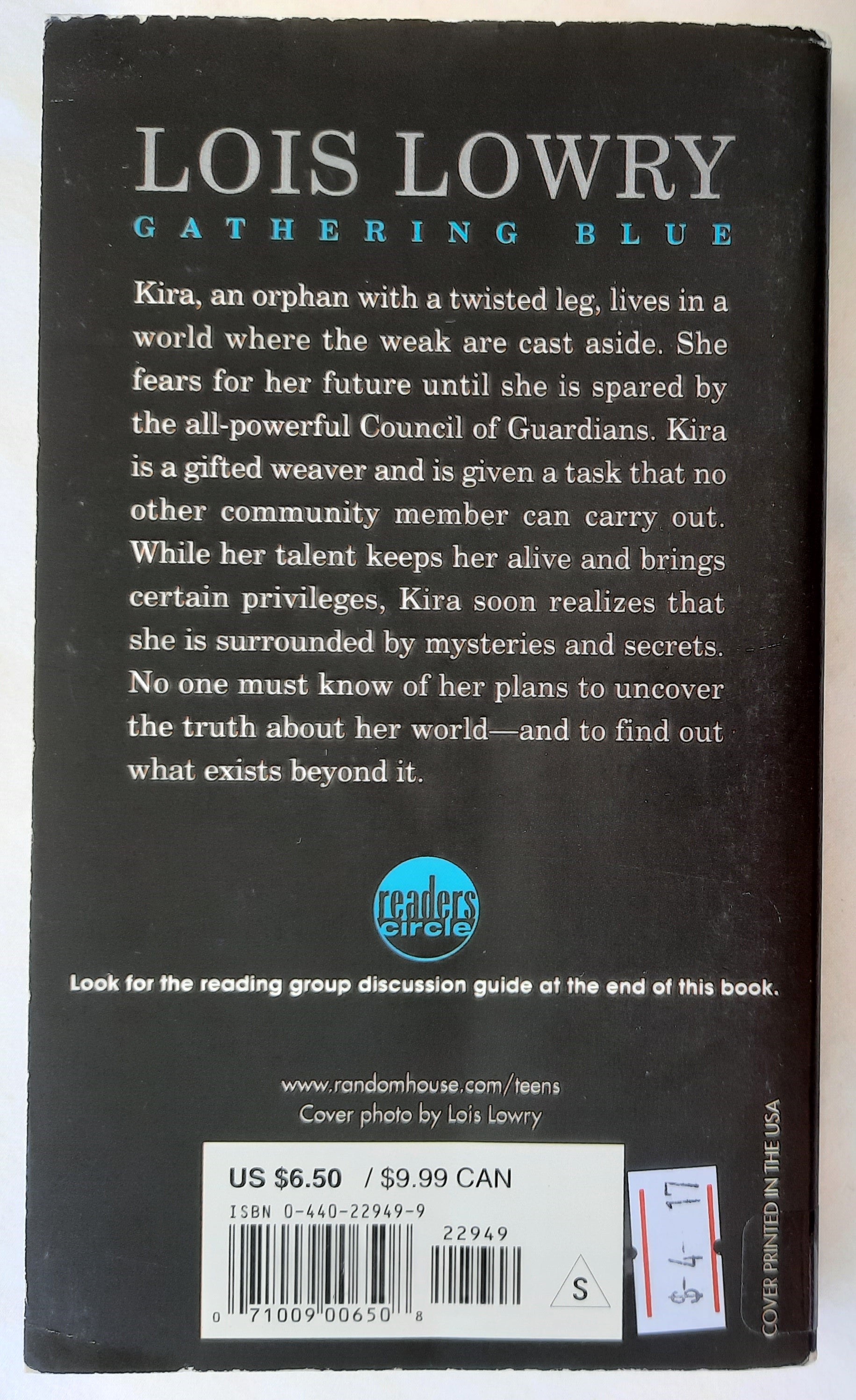 Lois Lowry’s Gathering Blue continues the quartet beginning with the quintessential dystopian novel, The Giver, followed by Messenger and Son.