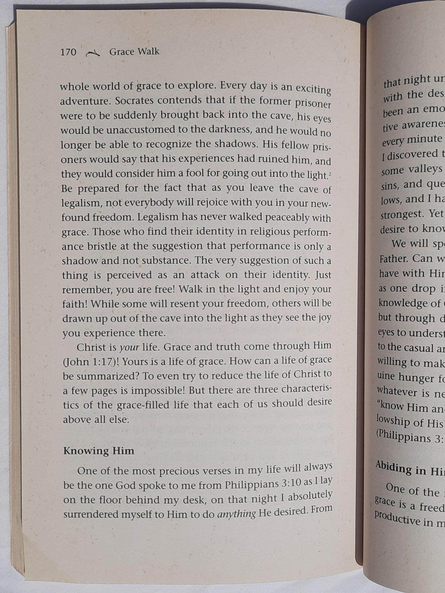 Living the grace walk gets Christians off this religious roller coaster. Using his own journey from legalism into grace, Steve McVey illustrates the foundational, biblical truths of who believers are in Jesus Christ and how they can let Him live His life through them each day. As they experience their identity in Jesus Christ, Christians will come to know "Amazing Grace" as not just a song but as their true way of life.