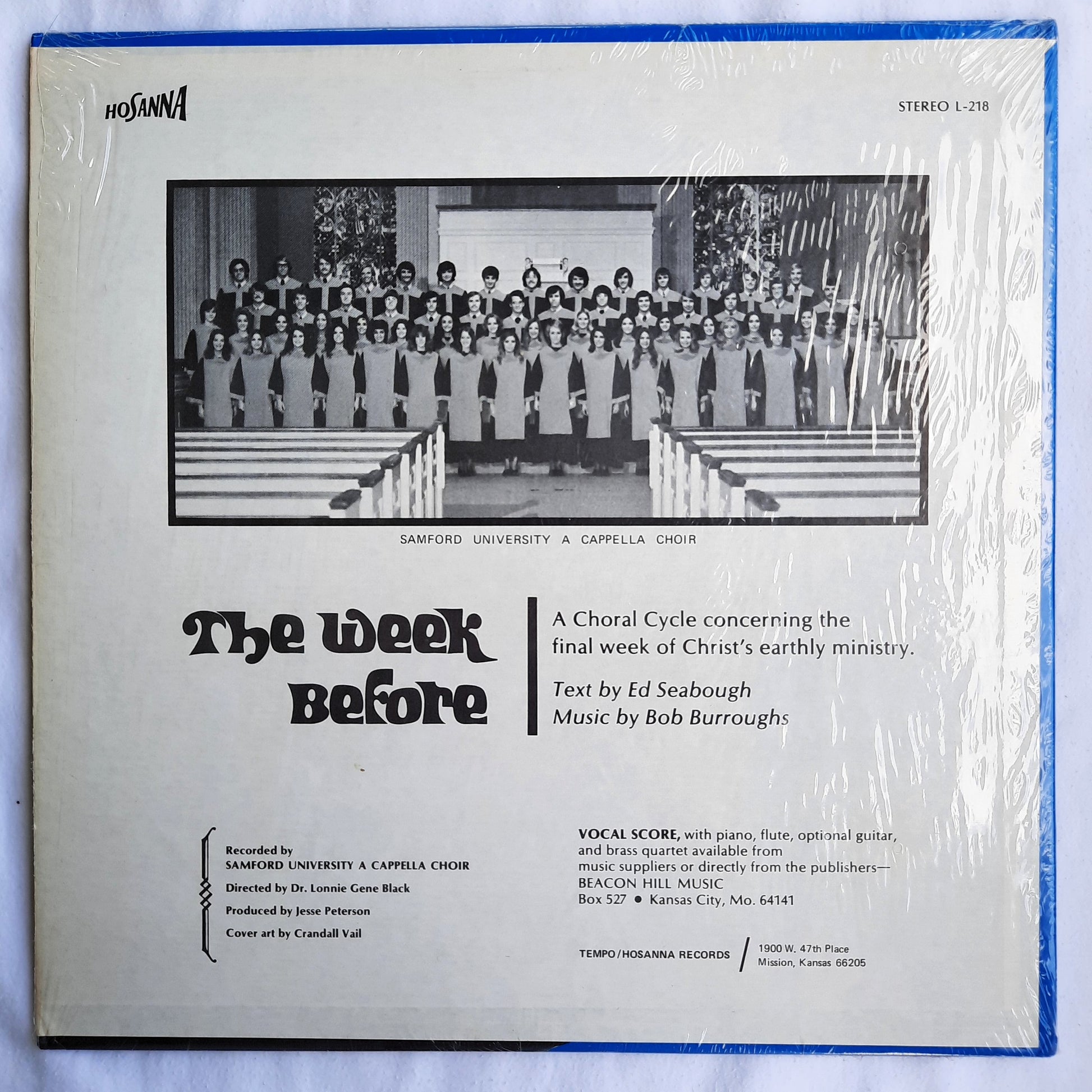 The Week Before by Samford University A Cappella Choir Collectible LP Vinyl Record (Very good, 1975, Hosanna Record, L-218)