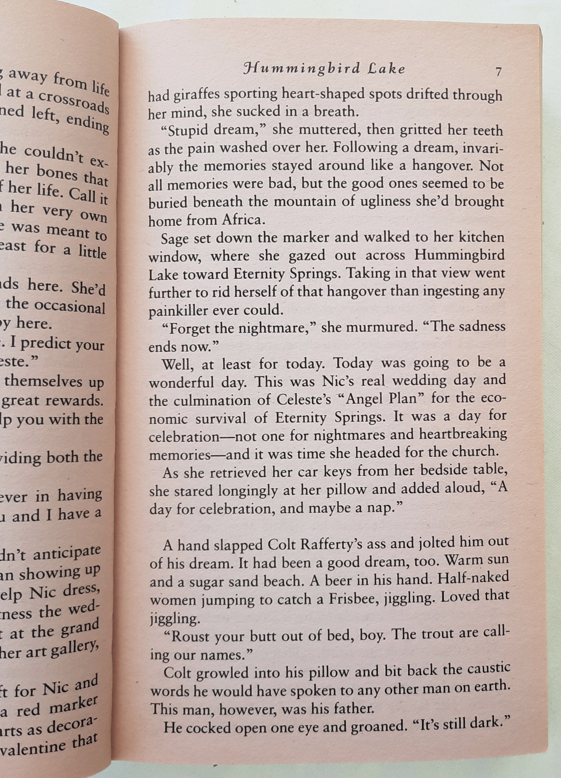 Haunted by painful memories, pediatric surgeon Sage Anderson gives up medicine and moves to Eternity Springs. There she finds a place to call home, but even her newfound success as a gifted artist isn’t enough to keep her nightmares at bay. Colt Rafferty is about to change all that.